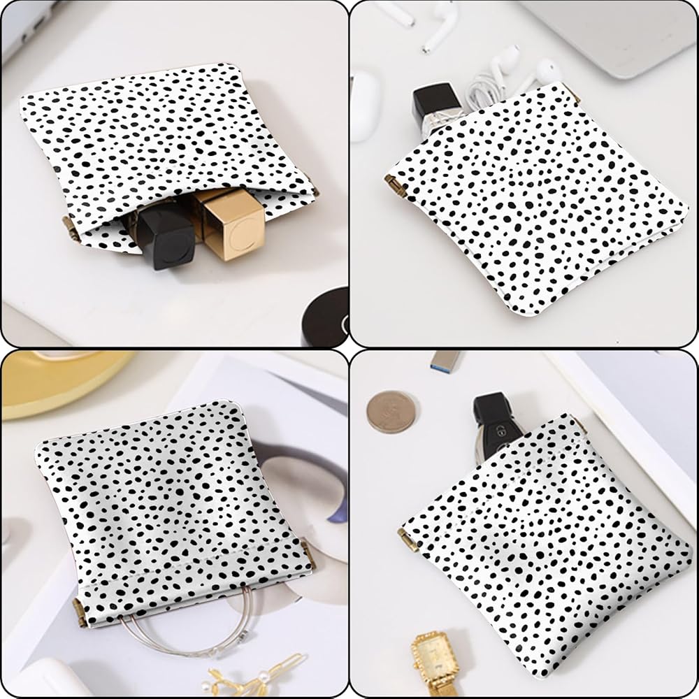 【Sturdy Material】Handcrafted by a strong spring frame and durable synthetic leather. The snap closure is tight but easy to squeeze and open, get rid of the trouble of zipper. The soft lining keeps your items safe, and the leather is waterproof and resistant to fading.