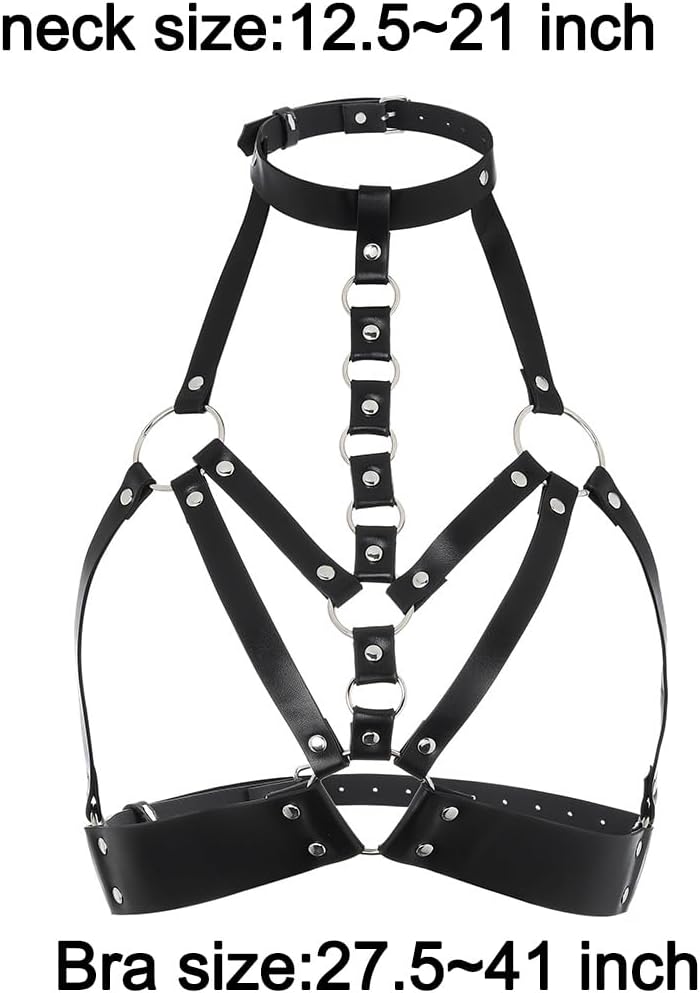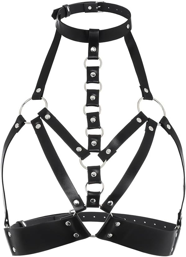 Material: Punk chest chain made of black leather and alloy, lightweight and comfortable, not easy to rip,and can be used for a long time