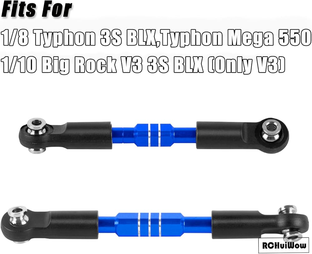【Fit for】:The RC Turnbuckles Camber Links fit for 1/10 Big Rock V3 3S BLX(Only fit for V3,Not fit for V1 V2),1/8 Typhon 3S BLX,Typhon Mega 550.