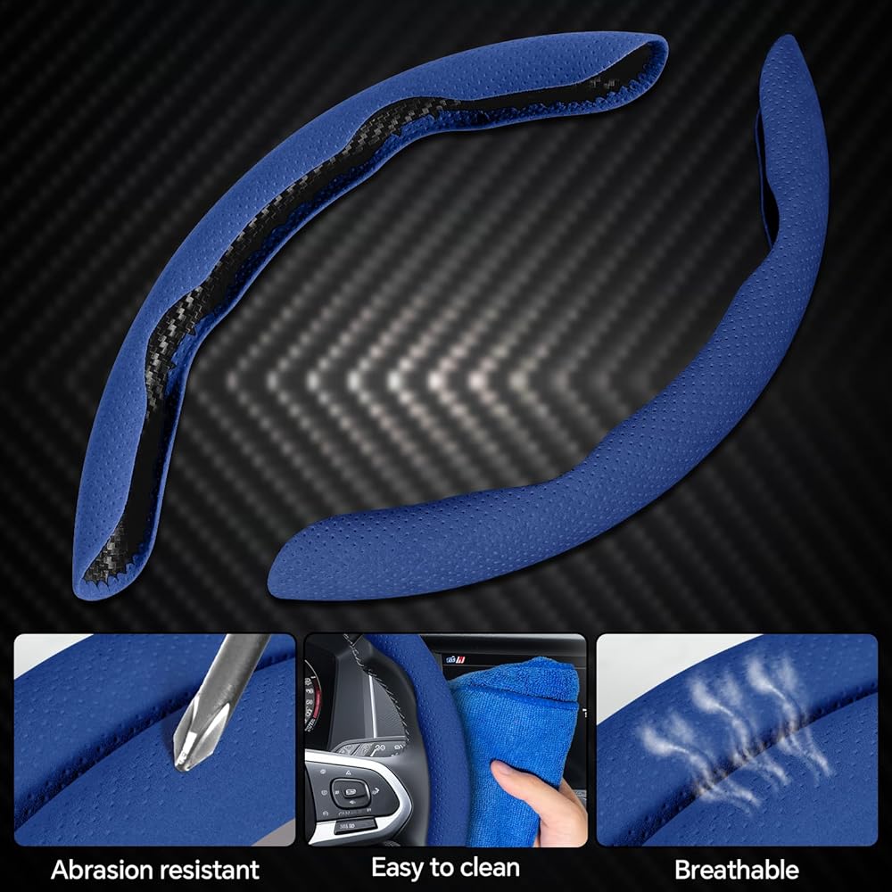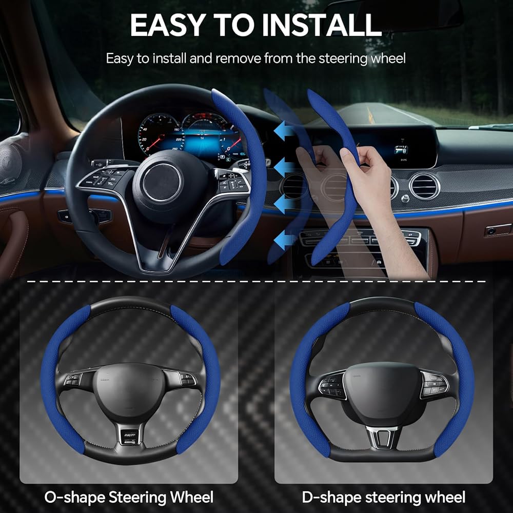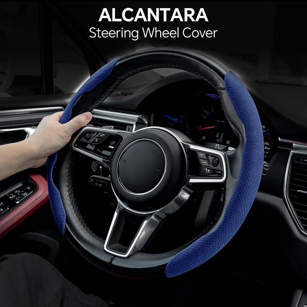 2 Piece Alcantara Steering Wheel Cover - Split Sport Design for D & O Shape Wheels, Soft Touch · Anti-Slip Grip · All Season Comfort · Durable Luxury Material for Performance Cars