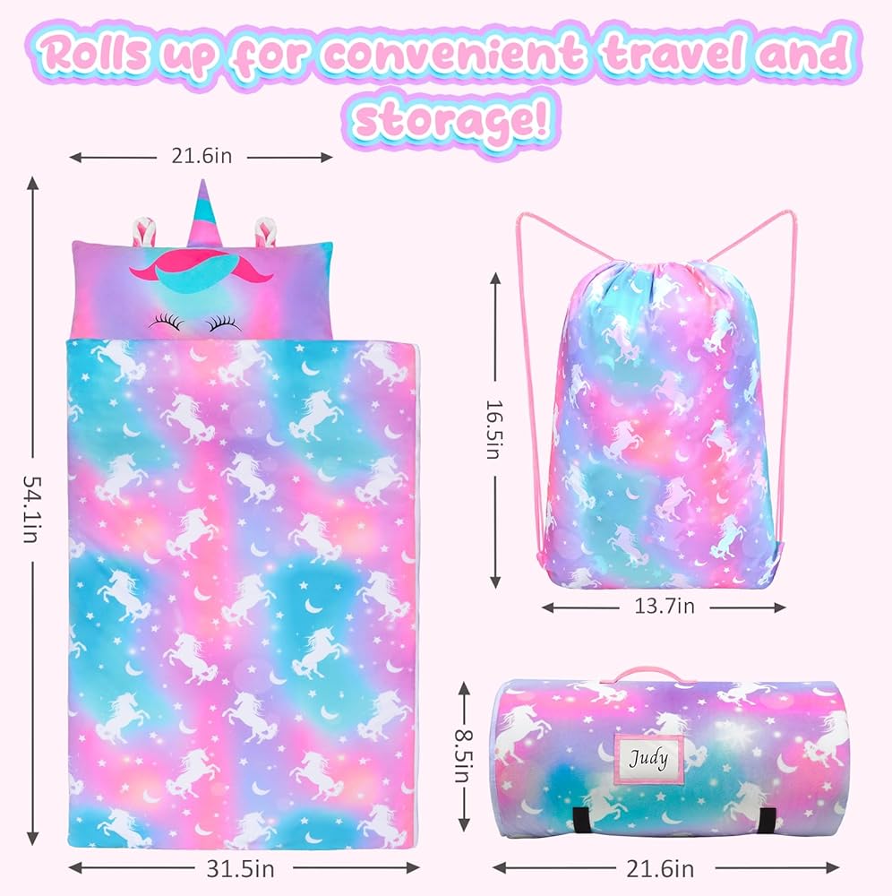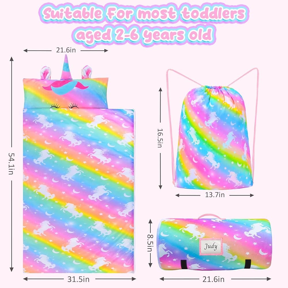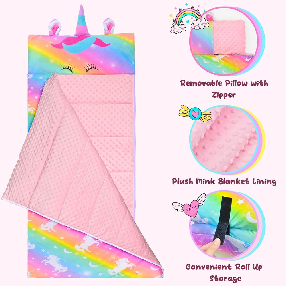 【HAPPY NAP TIME】Fiodrimy nap mat is print with vivid 3D unicorn print with solid horn and ears on the pillow are very adorable, you will love it at first sight. You will be super charming with it! Just enjoy nap time with this unique sleeping mat.