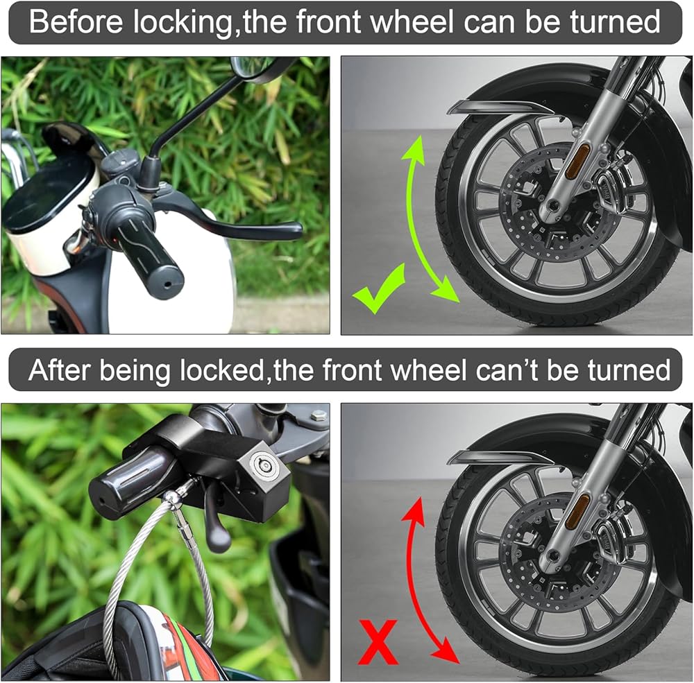 Dual Functionality: This versatile 2-in-1 lock functions as both a motorcycle brake lock and a helmet lock, safeguarding your ride and gear from theft