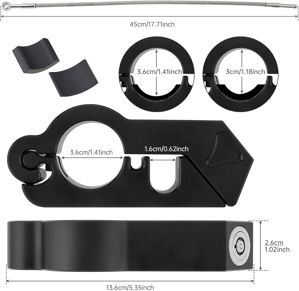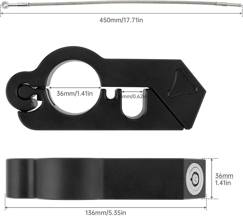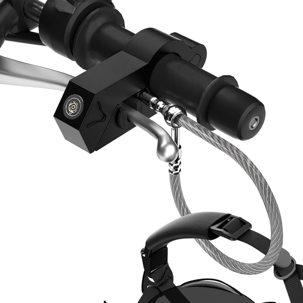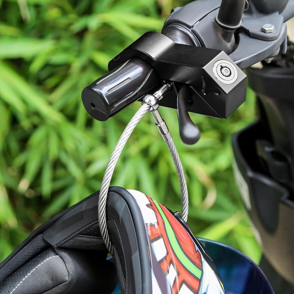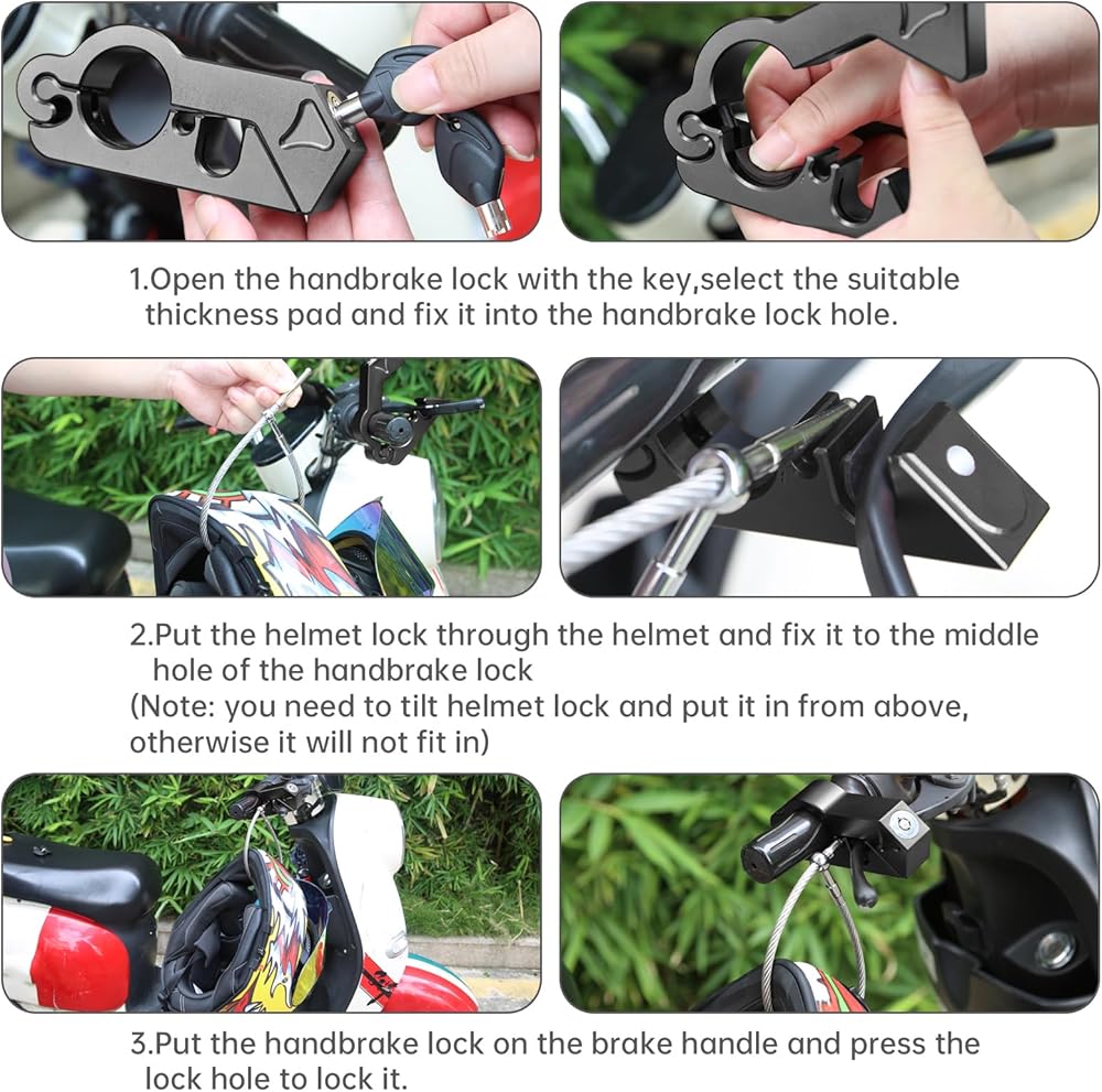 Easy Use:Simply secure the lock to the brake lever, thread your helmet through the cable, close the lid and confirm the adjustment. Push the button to lock and you're done