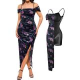 VERSATILE STYLING DESIGN: The draped neckline on both front and back, along with detachable straps, unlocks multiple wearing options, highlighting a woman's attractive and elegant personality and curves, This off the shoulder maxi dress can be paired with a shawl, cardigan, or high heels to create a glamorous and fashionable look for attending cocktail parties, weddings, reunions, formal events, and other occasions, showcasing feminine allure