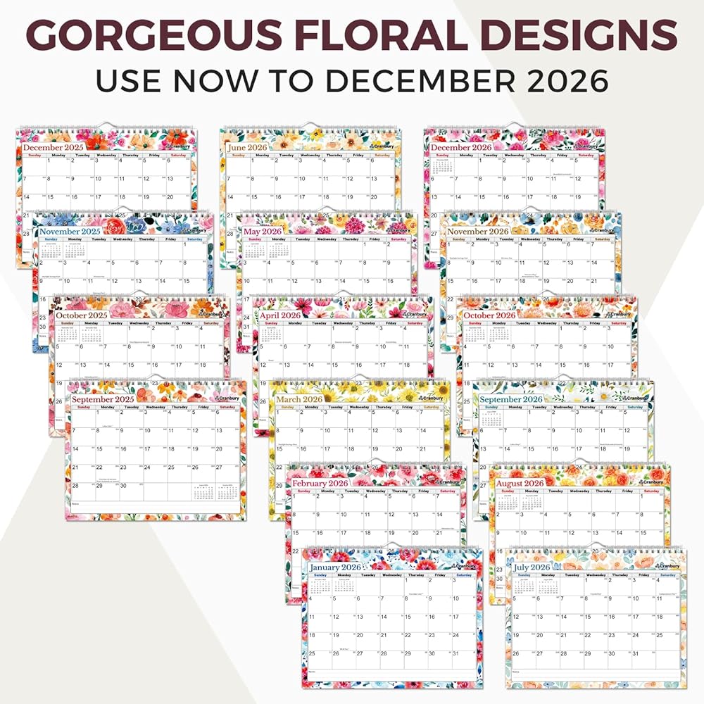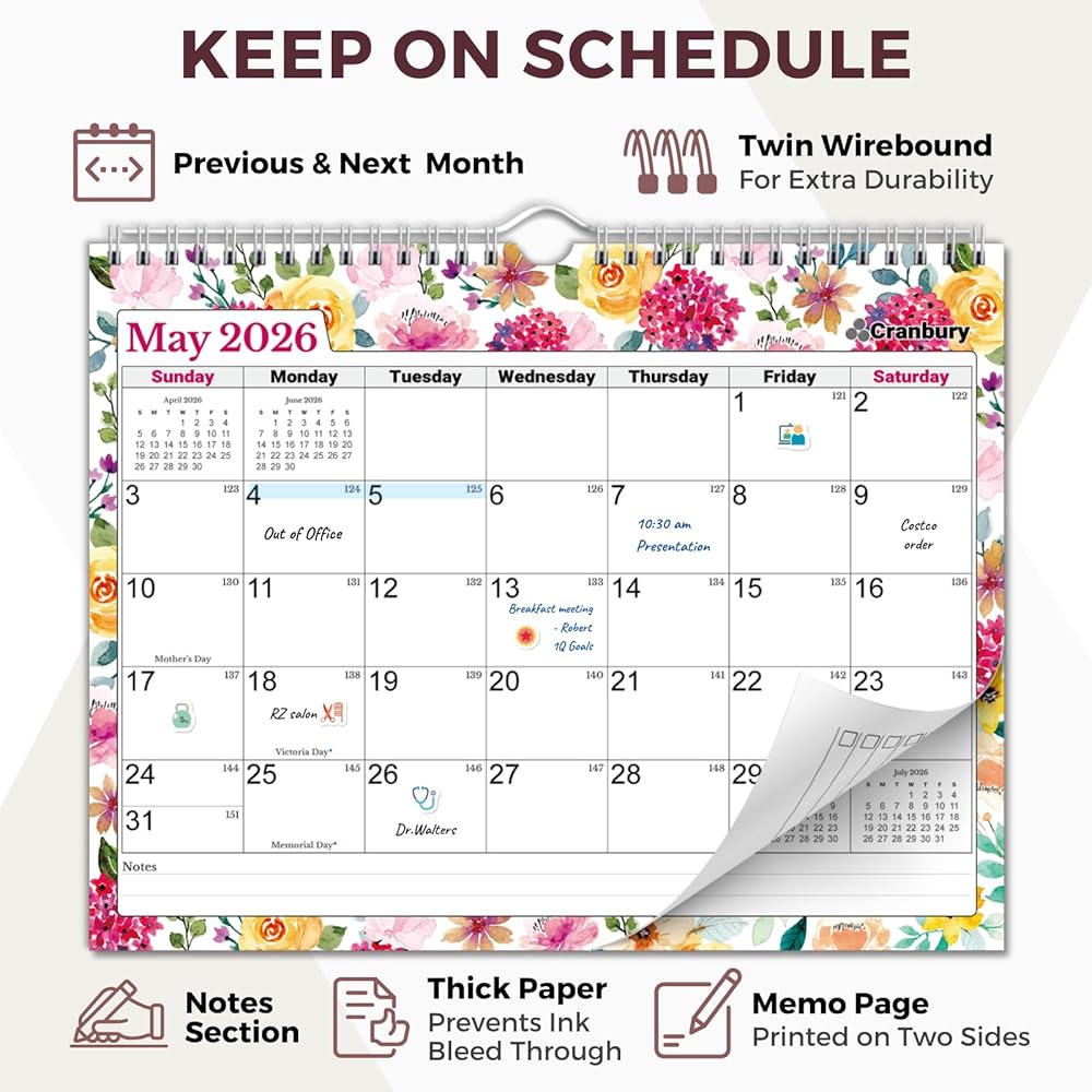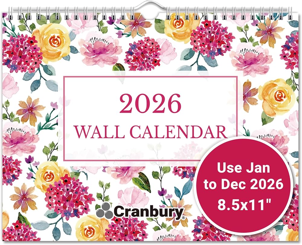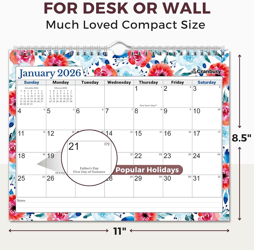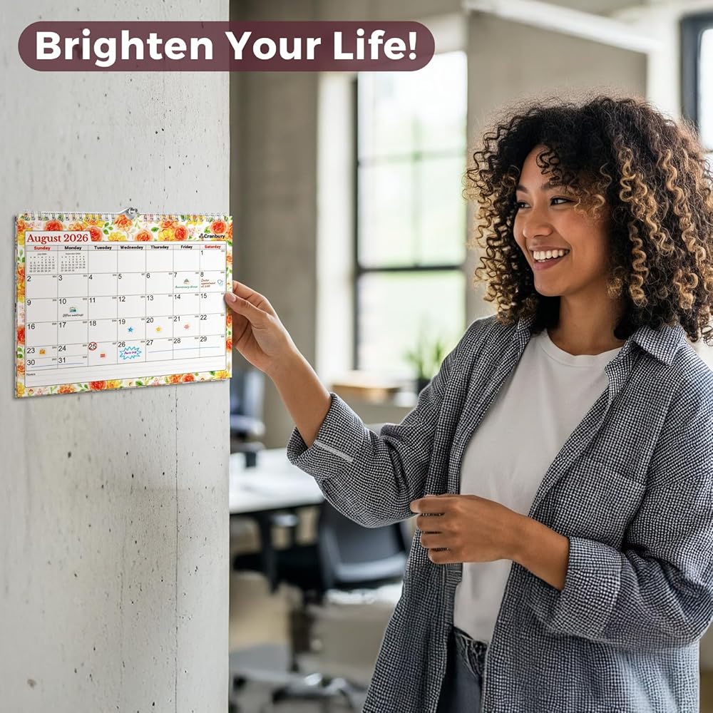 Premium Quality: Non-glossy paper calendar, Easy to write on, prevents ink bleed-through. Brighten Your Life with durable spiral bound calendar, 8 1/2 x 11 calendar by CRANBURY.