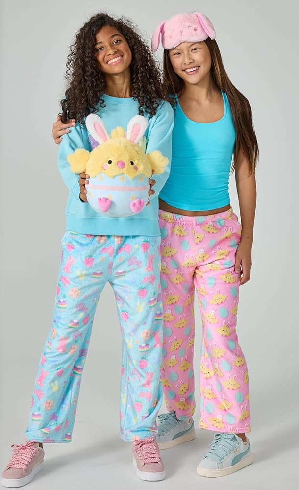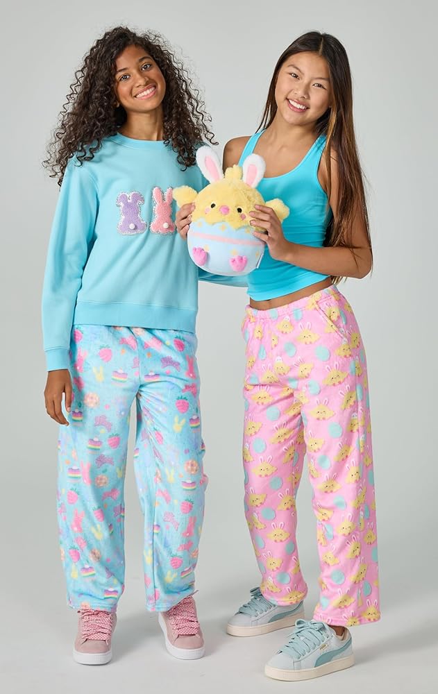 It doesn't get any more soft and cuddly than this! These plush pants are just the thing for getting comfy and cozy - and the fun prints make them anything but a yawn! These casual pants feature front slash pockets and are perfect for comfortably doing homework, watching tv, hanging with friends at camp or just chilling out in your own unique way! Extra soft, super silky machine washable fleece is 100% polyester for easy care. Available in children's sizes X-Small (4-6), Small (6-8), Medium (10-12) and Large (14).