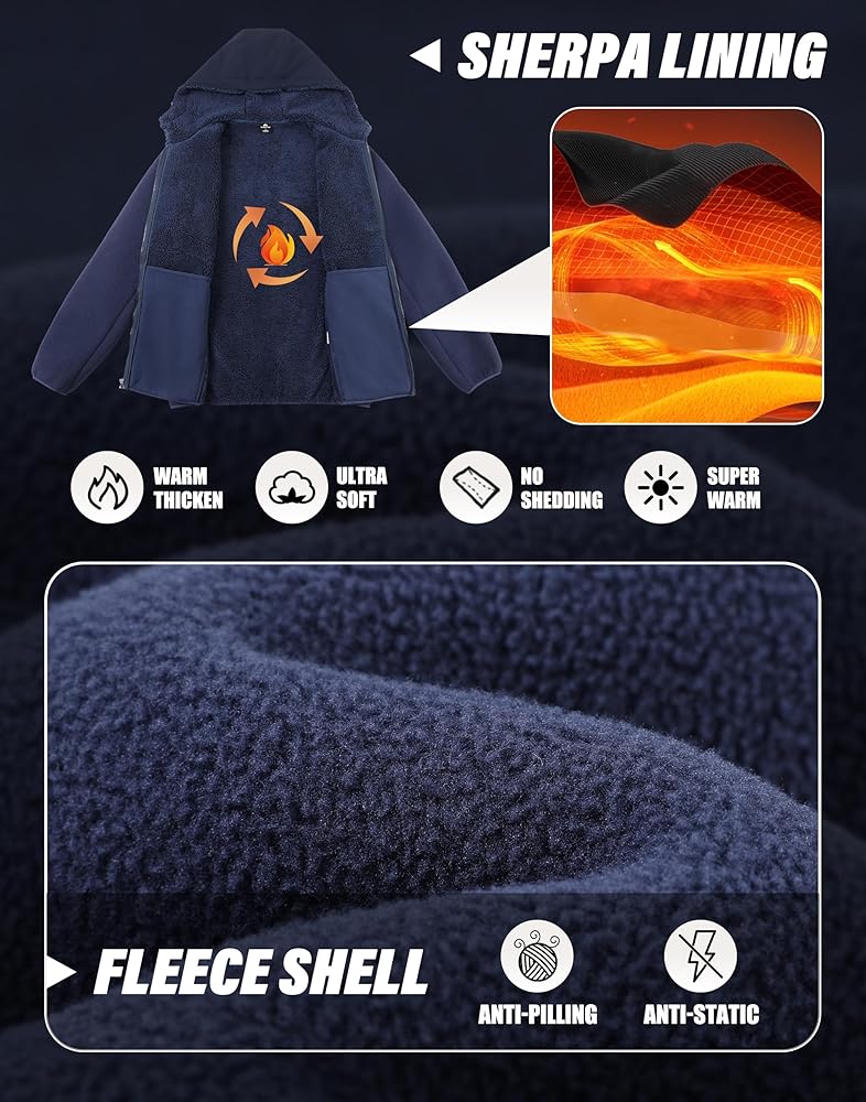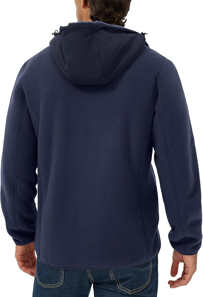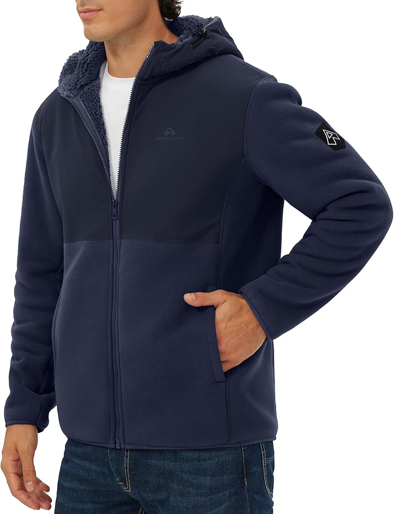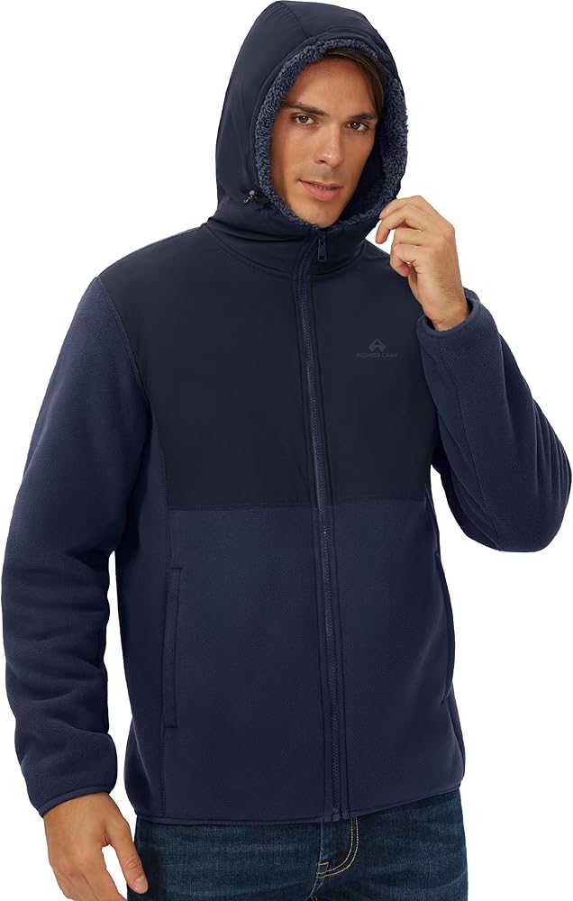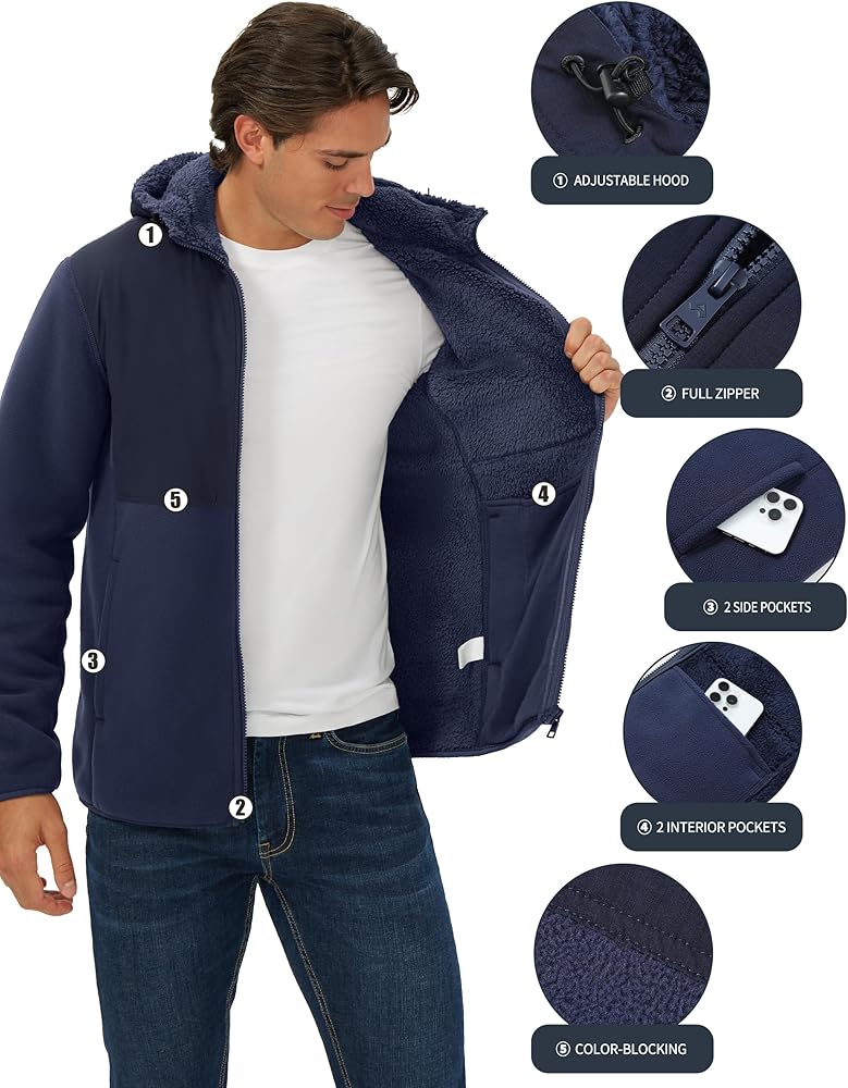 ANTI-PILLING & ANTI-STATIC: This mens polar fleece jacket is crafted from advanced premium fabric that resists pilling even after 30,000 rubs, providing warmth and windproof protection for cold, blustery weather. The color-blocking contrast (chest and hood) is made from nylon and spandex, adding style, functionality, and heat retention
