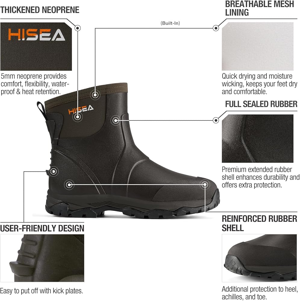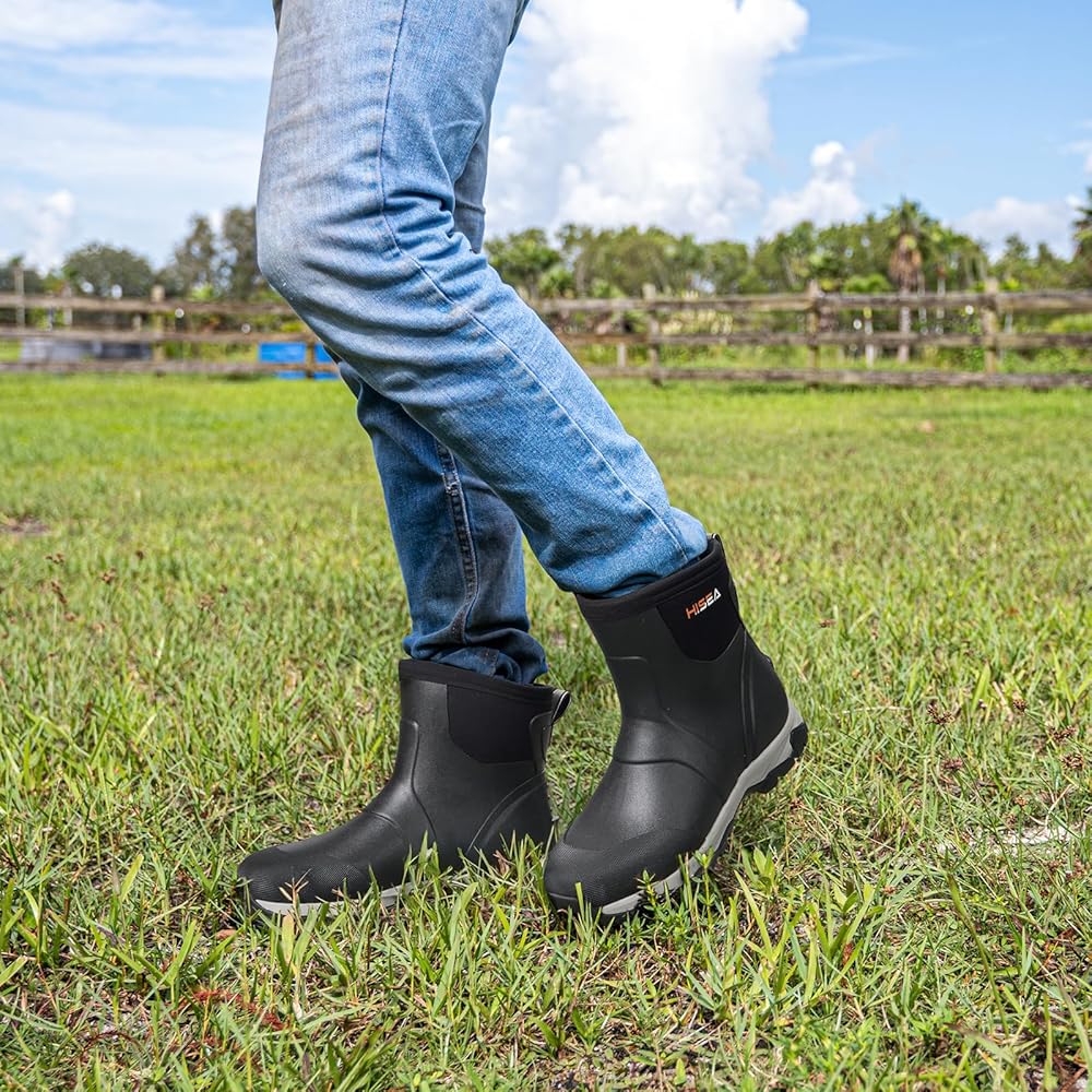 【All Season and Multi-Functional】Slip into waterproof, breathable and comfort with HISEA Excursion Pro Men's Rain Boots. Perfect for all outdoor activities and adventure, such as gardening, camping, hunting, farming, yard working, hiking, fishing. Great choice for everyday chores and daytrips alike.