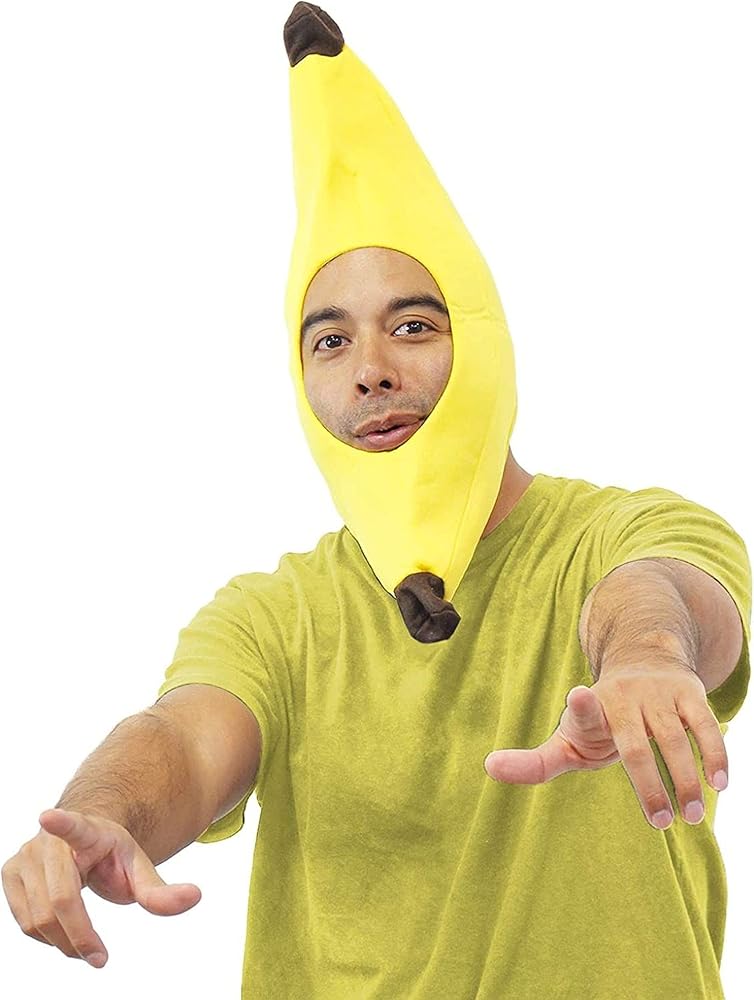 BANANA-SHAPED HAT: Look silly and bring laughter to everyone with this bright yellow, soft banana prop; easily close it with a hook-and-loop fastener at the back