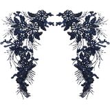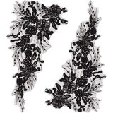 GORGECRAFT 1 Pair 3D Flower Embroidery Lace Fabric Black Sequin Ribbon Trim Embroidered Bead Floral Applique Sew on Patches Glitter Sewing Ornament Paillette Diy Costume Accessories for Bridal Wedding