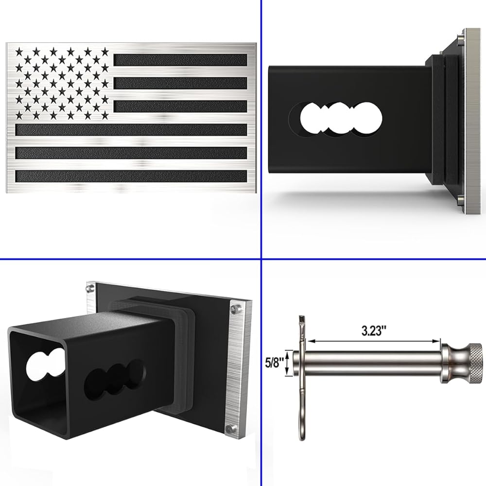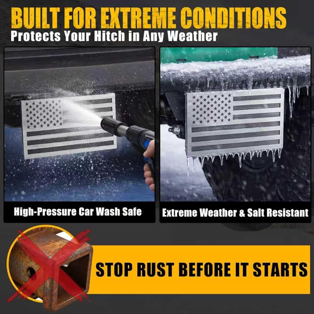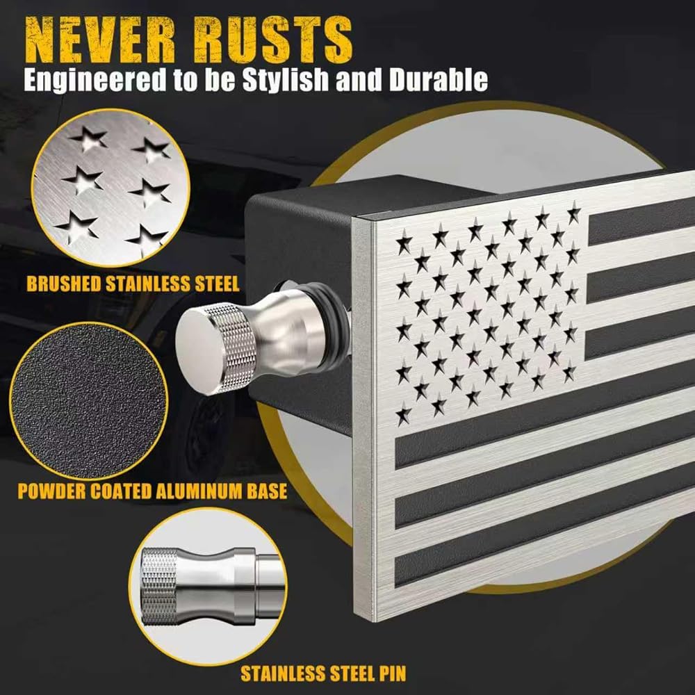Synrroe Heavy Duty American Flag Hitch Cover for 2" Receivers - Brushed Stainless Steel Flag & Aluminum Base - Mechanically Fastened (Won't Rust or Peel) - with 5/8" Stainless Pin