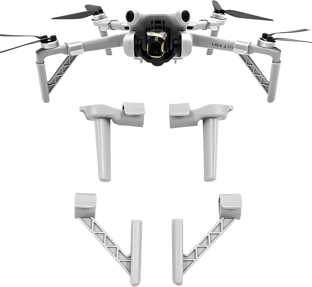 Compatibility: Designed specifically for DJI Mini 4 Pro drone, this extended landing gear allows for takeoff and landing in uneven ground conditions, effectively protecting the front/rear legs from ground friction and ensuring the safety of the drone body.