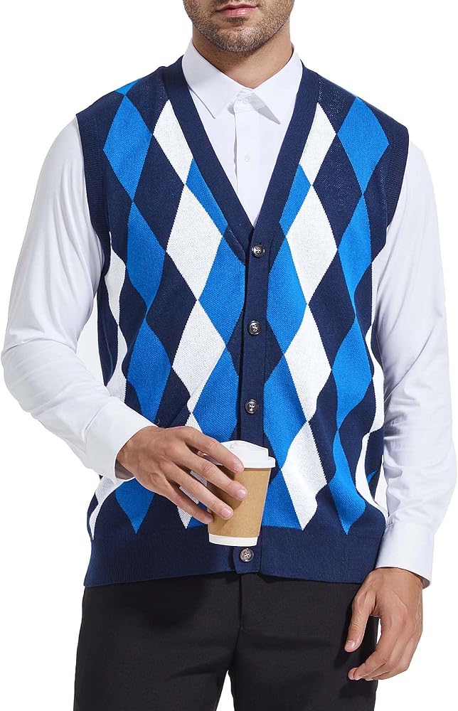 Vintage & Classy - Mens argyle sweater vests featuring a front argyle pattern that is simple yet dynamic, together with button closure, v-neckline, classic fit, a great timeless elegance piece to your wardrobe.