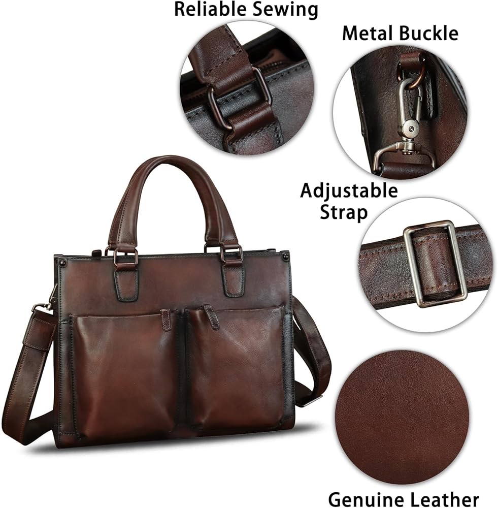 About This Mens Handbag:This bag is made manually from the genuine leather. After a special embossed process, it looks very special in a unique retro style