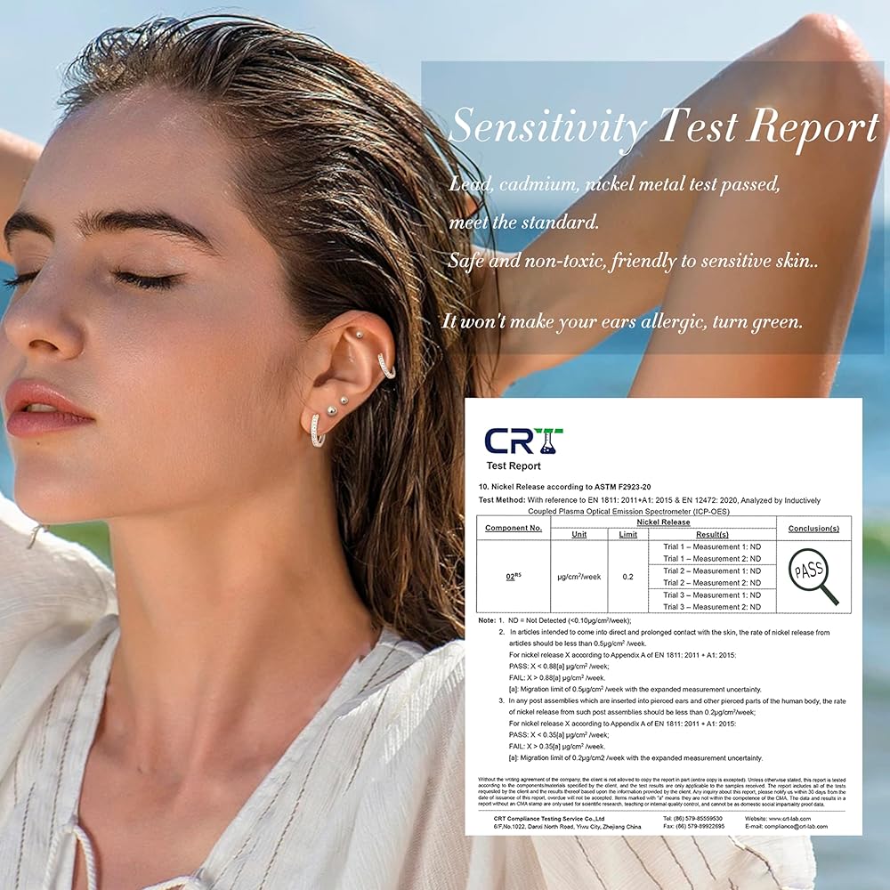 【Hypoallergenic Earrings】--Crafted from surgical steel and AAAAA+ CZ, our hypoallergenic earrings for women offer the ultimate comfort for sensitive ears. These plated in enduring white gold, ensuring they won't cause irritation. Whether you're looking for silver stud earrings or stainless steel earrings for women, our collection provides a safe and stylish option.