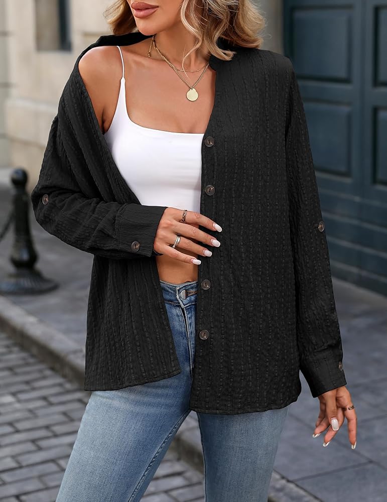Premium Fabric:Women's button down shirts with fashionable "seersucker" texture fabric, soft and lightweight, comfortable to wear, classic durable, simple and versatile button up shirts suitable for year-round wear