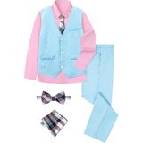 The suit for boys is included: dress shirt, dress pants, dress vest, tie, bow tie and pocket square