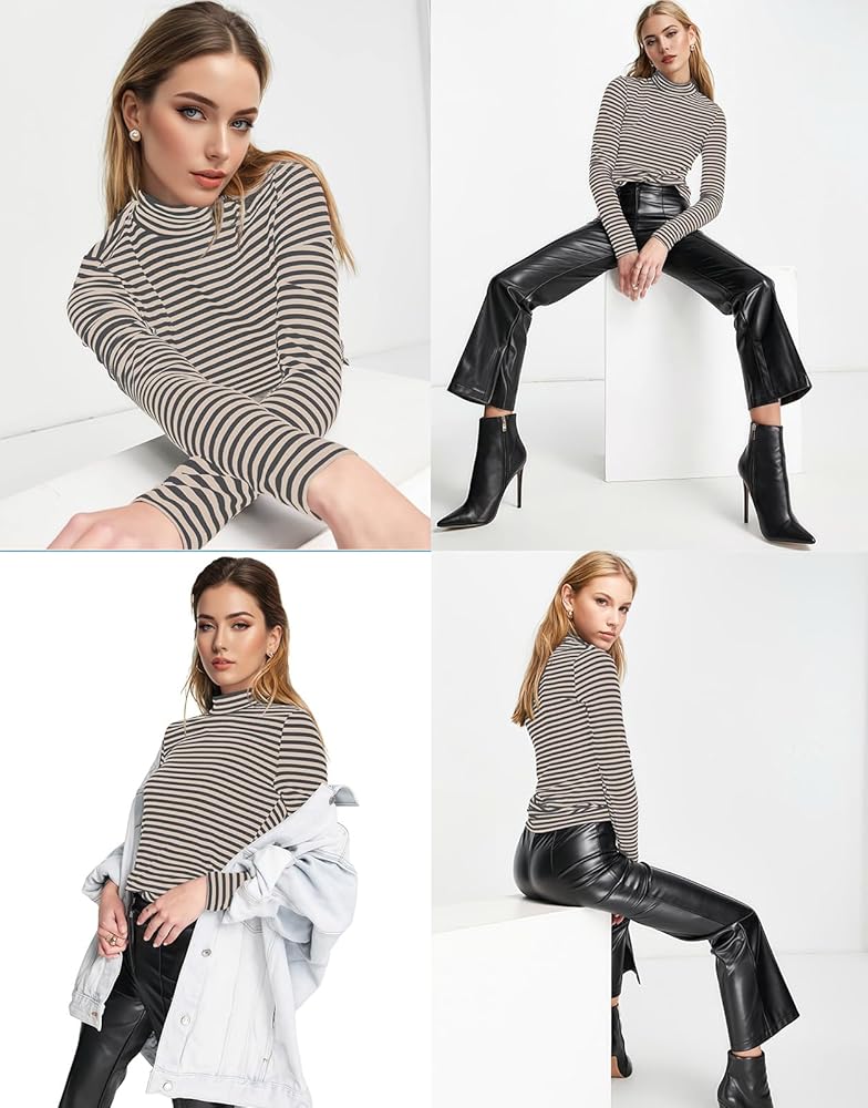 Features: Comfy long sleeve shirts,, fashionable striped elements, slim style, round neck pullover top, slim fit silhouette, perfect closet staple piece that flatters the figure and shows off the perfect body shape