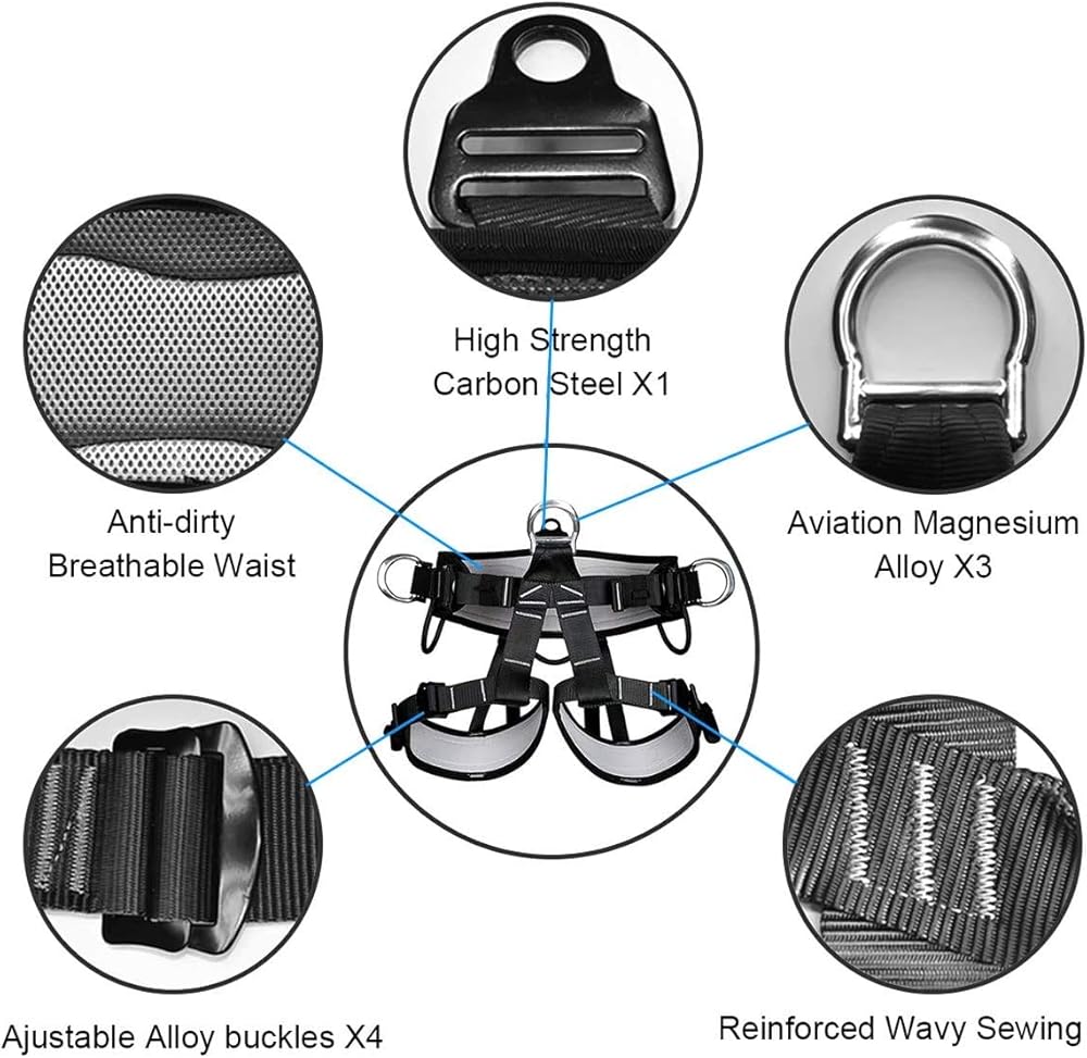 ※Wide Range of Uses—This safety belt is perfect for mountaineering and rock climbing, Outward Bound,SRT, fire rescue, working from heights, construction, demolition, tree climbing, roofing, camping, firefighting from trees, and a wide range of outdoor activities.