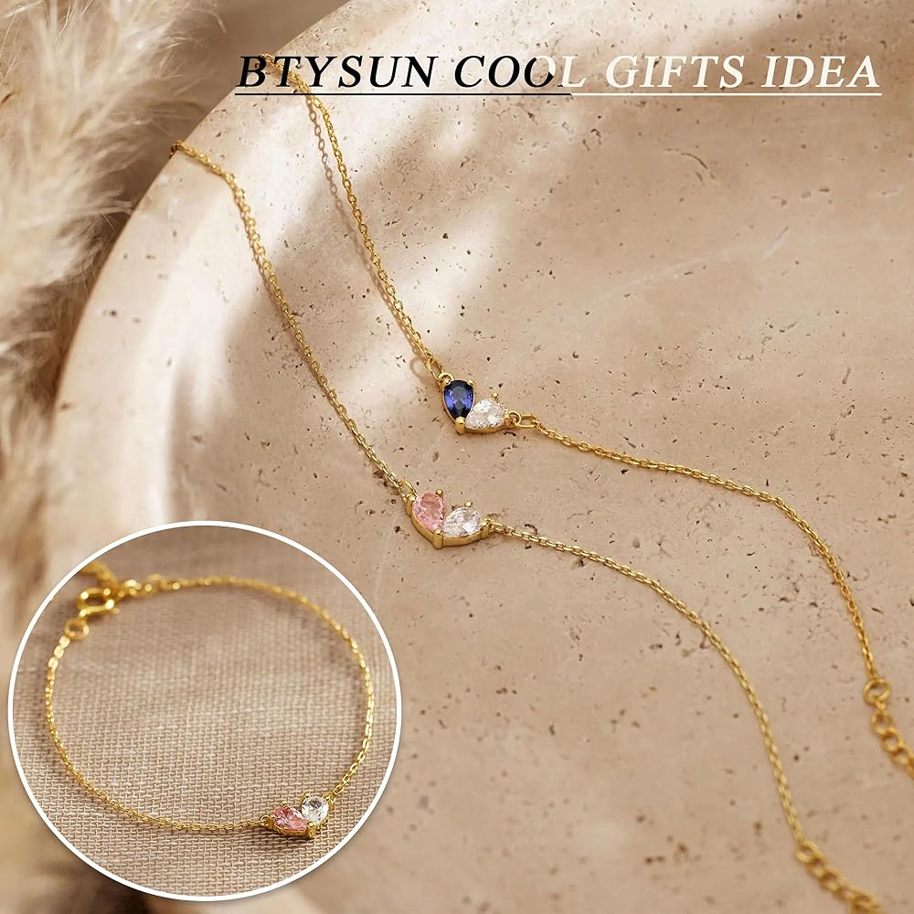 Cool Girlfriend Birthday Gifts:Get the dainty gold bracelet with 2 birthstone as wife Christmas gifts,gold bracelets for women, birthday gifts for girflriend, sister,niece,daughter,granddaughter,aunt on her graduation,Christmas, anniversary,wedding, Thanksgiving.