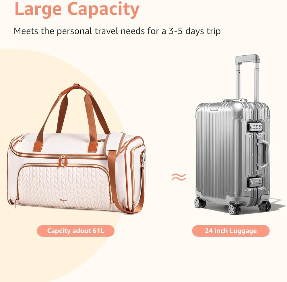 【Multifunctional Marvel】Unparalleled in its design, our carry-on marvel boasts 14 intelligently crafted compartments, offering a generous 60L capacity. From suits and dresses to shoes, ties, and beyond, its multiple zip pockets ensure ample storage for all your essentials. With a dedicated wet/dry separation compartment, it effortlessly accommodates post-workout attire or damp items, guaranteeing organized travels while keeping your garments immaculate.