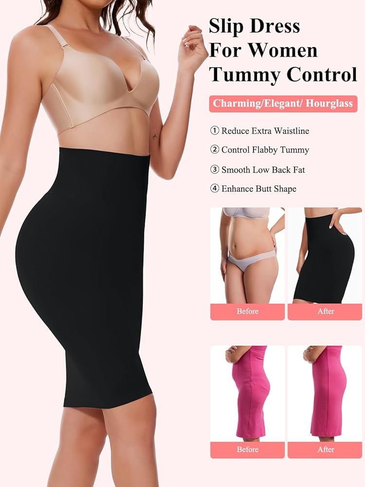 Shape Abdomen & Waist: The abdominal double-layer of this seamless slimming slip body shaper effectively smooths and shapes your midsection, support your back, suck your abdomen fat in, and flatten your tummy, the inner shapewear panties also has butt lifter effect. We aim to emphasize your perfect body curve by creating a slimming silhouette with slip dresses that hide belly fat.