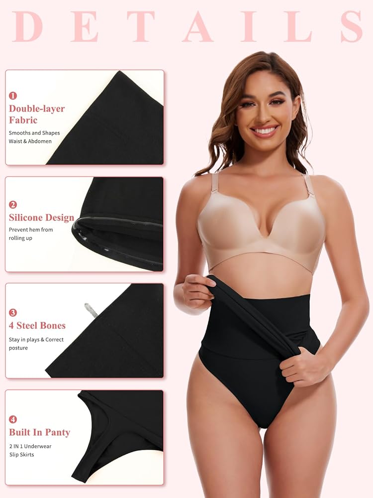 Built in Thong Design: This shapewear slips for women under dresses with a seamless built in shorts, eliminates the need to wear additional panty. Half slips body shaper can be worn as a boyshorts panties for party dresses, enhancing comfort and confidence, and it can also be worn on its own as it provides extra compression and support. Thong panties underwear can effectively enhance the contour of the buttocks, making them tighter and fuller for a more attractive figure.