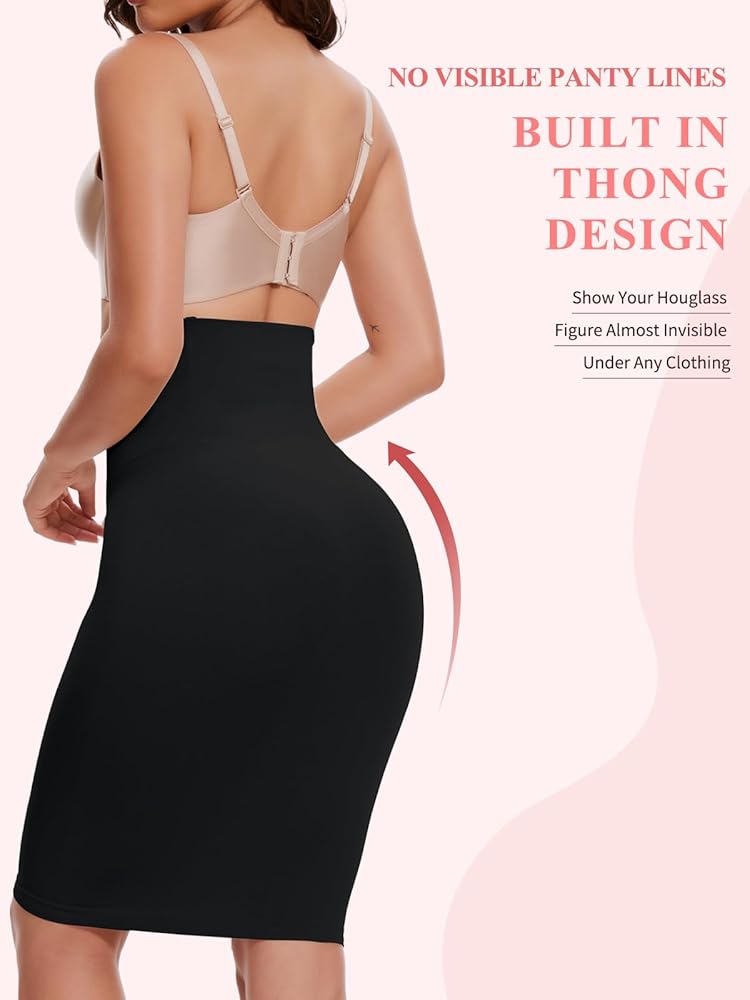 High Waist Shapewear Slips:This half slip features a high-waisted with a wide waistband that has steel bones, ensuring it stays in place without rolling or shifting around as you move. As High-waisted with steel bones, this half slip shapewear effectively improves body proportions, enhances body posture, and prevents waist sagging issues. The anti-slip silicone strip helps tummy control skirt underwear in place and give you the security to move around freely&without constraints