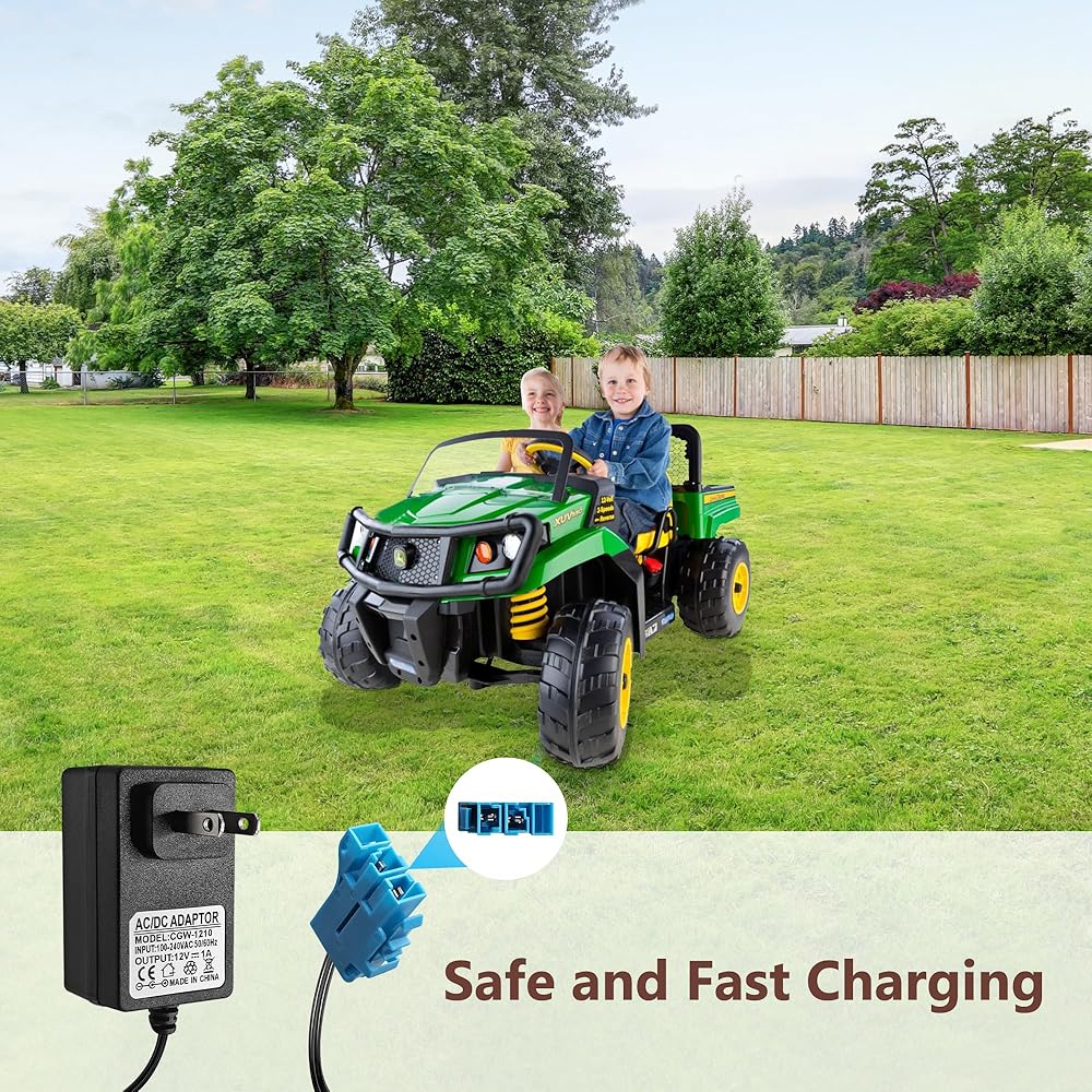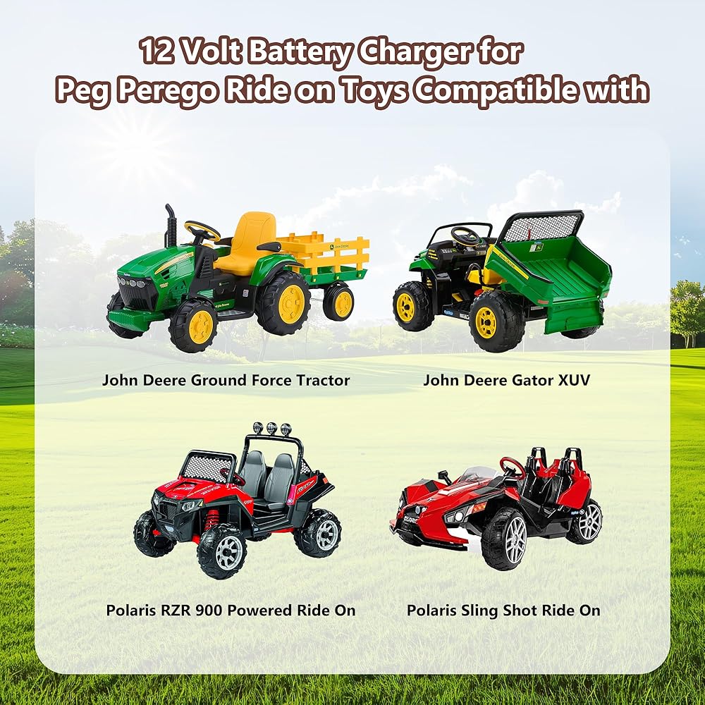 12v Battery Charger for Ride on Toys Compatible with all 12-Volt Peg Perego Vehicles and Batteries, John Deere Ground Force Tractor, John Deere Gator XUV Polaris RZR 900 Powered Ride On Car, Etc...