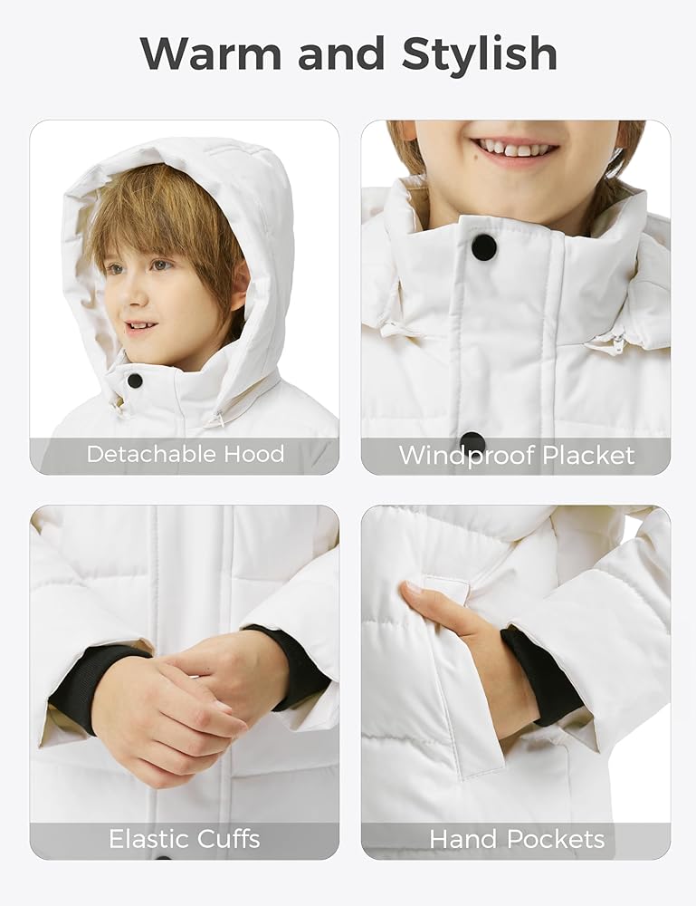 Embraced with Warmth - Designed with a detachable hood and ribbed cuffs, our boys' puffer coat effectively prevents cold winds from entering, locking in heat and enhancing warmth in cold winters.