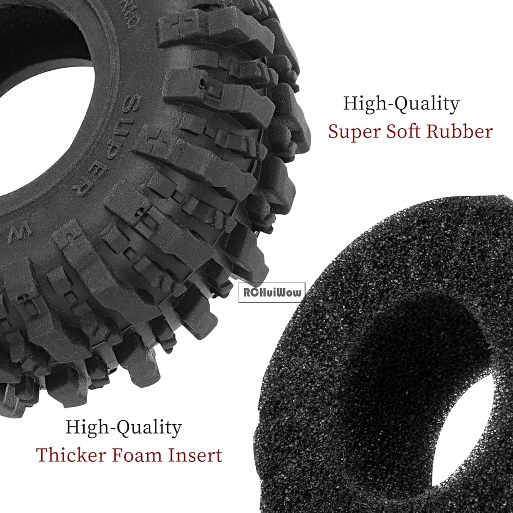 【High Quality Material】: These 1.0 Beadlock tires are more practical and durable because of environmentally friendly and strong materials. These tires have foam pads and are made of high-quality soft rubber and plastic materials.