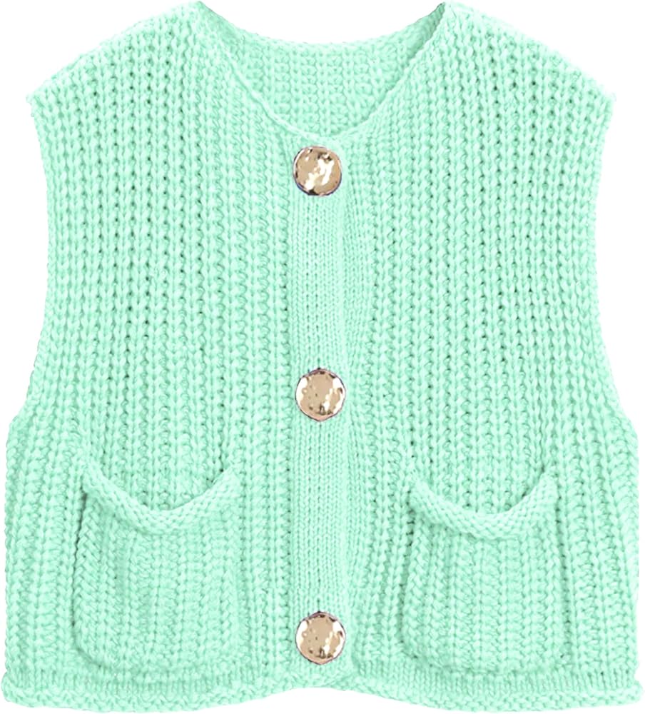 Crop sweater vest women with open front, round neckline and gold button-up front, 2 side pockets easy to carry on!
