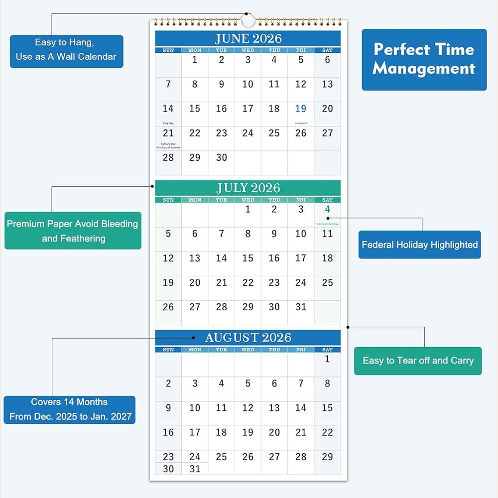 PREMIUM PAPER - Extra thick premium paper of calendar 2025 effectively prevents ink through and feathering. Bright white and paper creates clean writing space, making writing no longer in a mess. There's notes section on the top right that you can write down your priorites of this month.