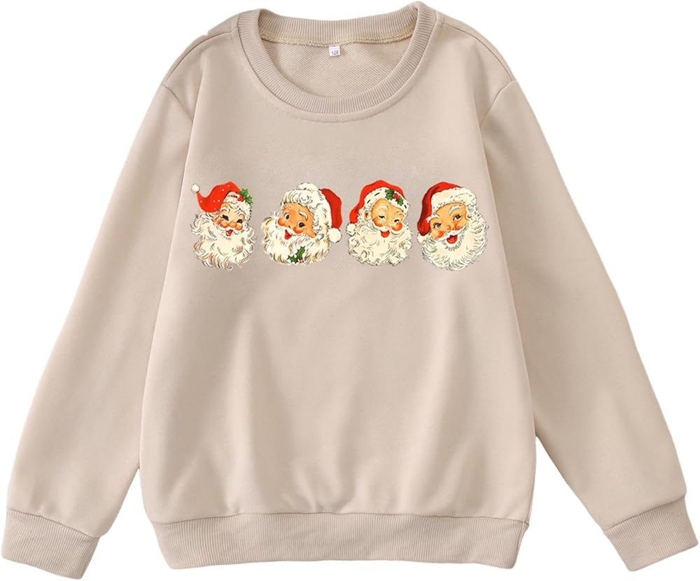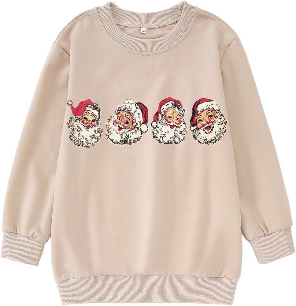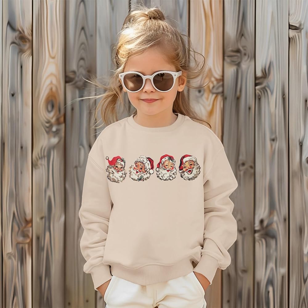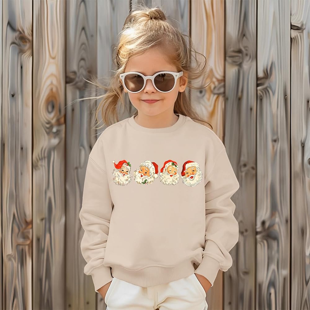 🎅【Festive Christmas Design】This christmas crewneck sweatshirts for kids girl features funny 4 Santa Claus graphic design. Ensuring your child look merry and bright on any holiday occasion. Little girl cute santa claus pullover top, kids xmas long sleeve shirts. It's stylish and practical, adding a touch of holiday cheer to your baby's outfit.