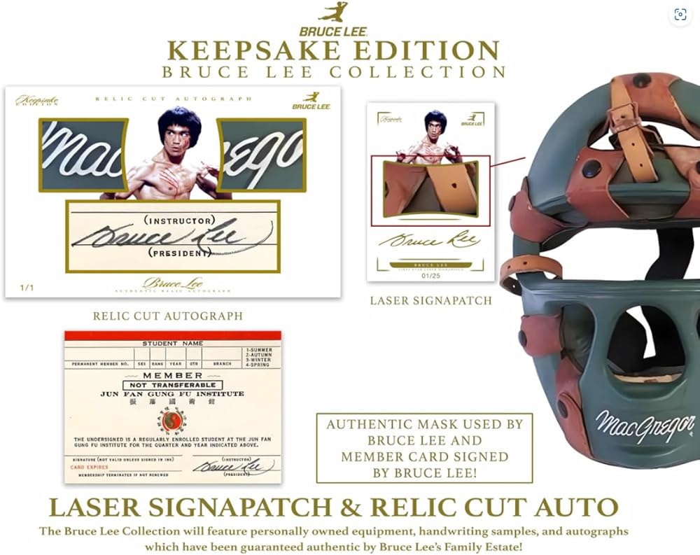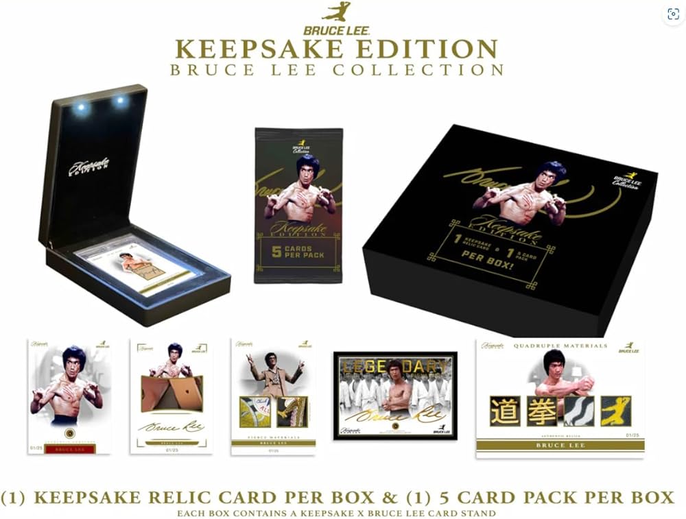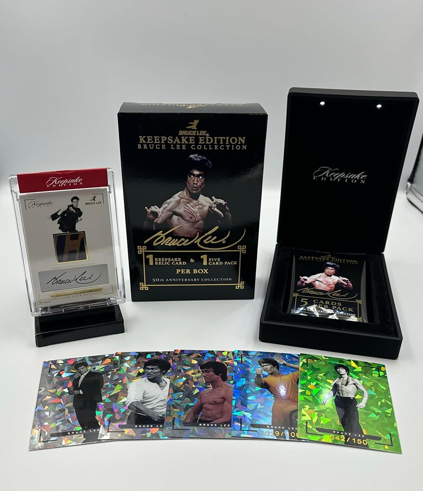 1 Bruce Lee Keepsake Relic Card: A museum-quality piece. Could include a fight-worn mask, a music player from his office, handwritten letters, original film reel negatives, or officially licensed collectibles.