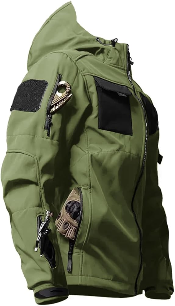 【Multi Pockets】This military tactical jacket up to 7 pockets provide large and safe storage - 2 huge storage chest pockets for tactical pen and light, 2 zippered shoulder pockets with hook & loop tapes. Forearm zipper pocket on the right arm for key, cards or small accessaries, convenient for you to store things to keep your hands free when you go outside.