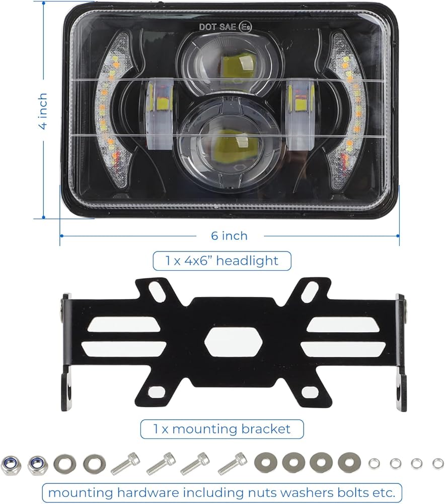 [RELIABLE USAGE] This 4x6” led headlight kit can be directly used to replace your damaged motorcycle headlight, restore your lighting function and ensure your safe while riding. With equipped mounting bracket and hardware, you can save much time and feel much easier to install.