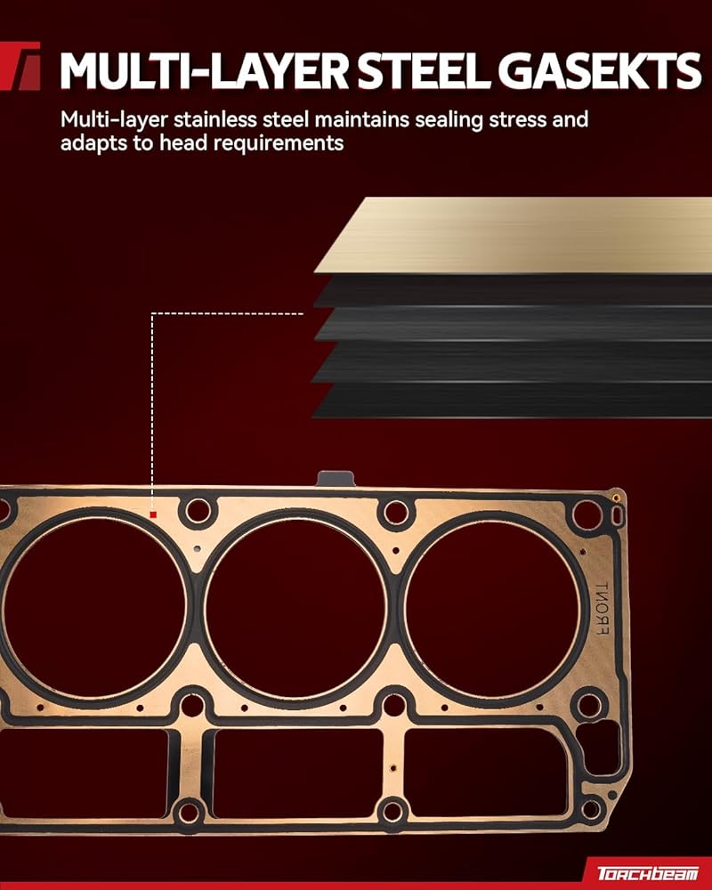 【Excellent Sealing】Engine cylinder gasket kit can effectively seal the coolant, oil and air inside the cylinder, eliminating leakage paths and allowing the engine to run stably.