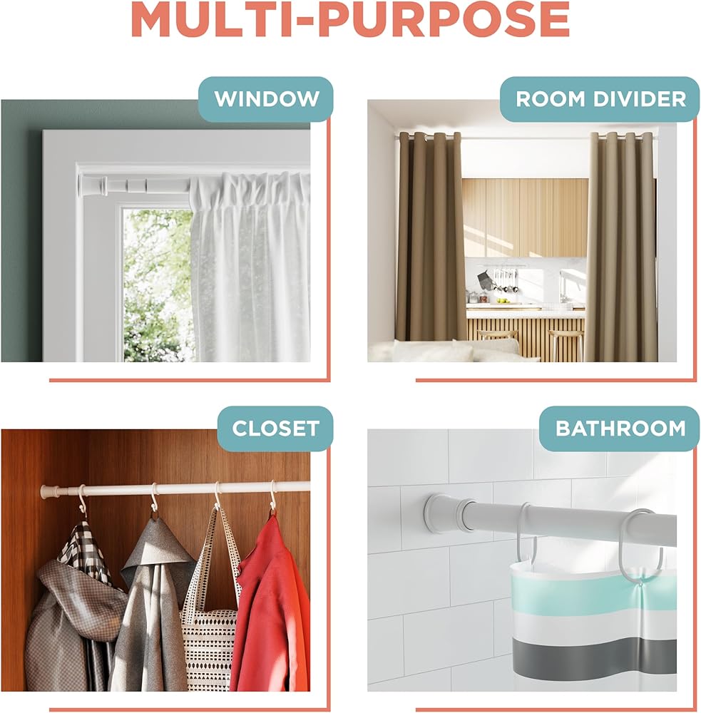 Versatile for Multiple Uses: Beyond curtains, this tension rod can be used as a room divider, in doorways for added privacy, or in closets to hang clothes and organize your space effectively, enhancing overall functionality throughout your home.