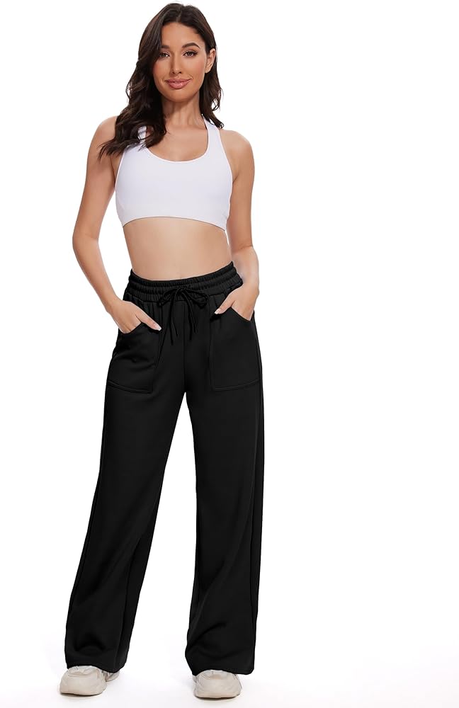 ▲Perfect Fit: Featuring an adjustable drawstring waist and a relaxed fit, these fleece wide leg sweatpants are designed to flatter all body types.