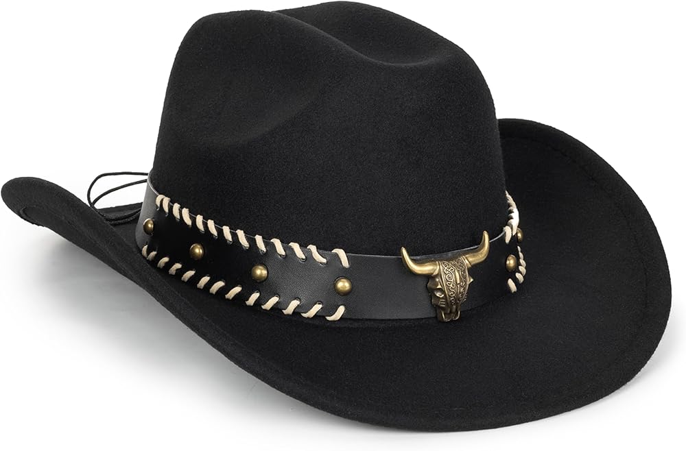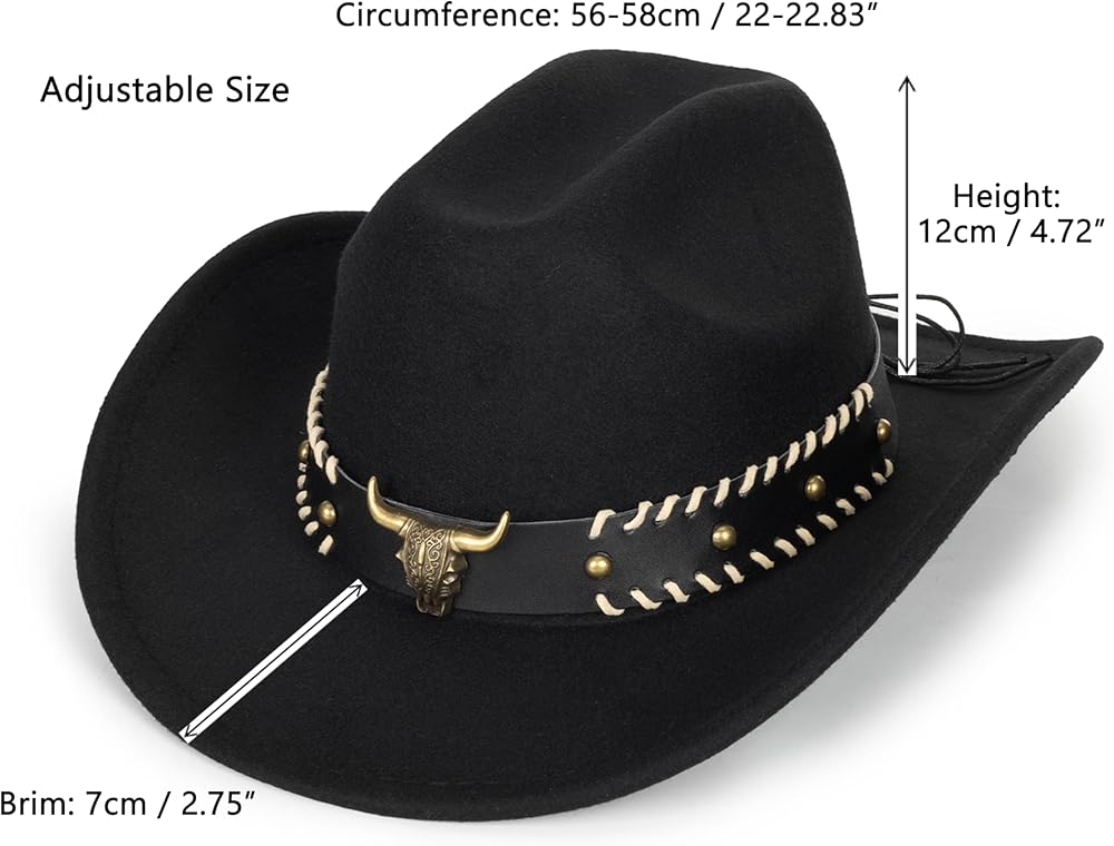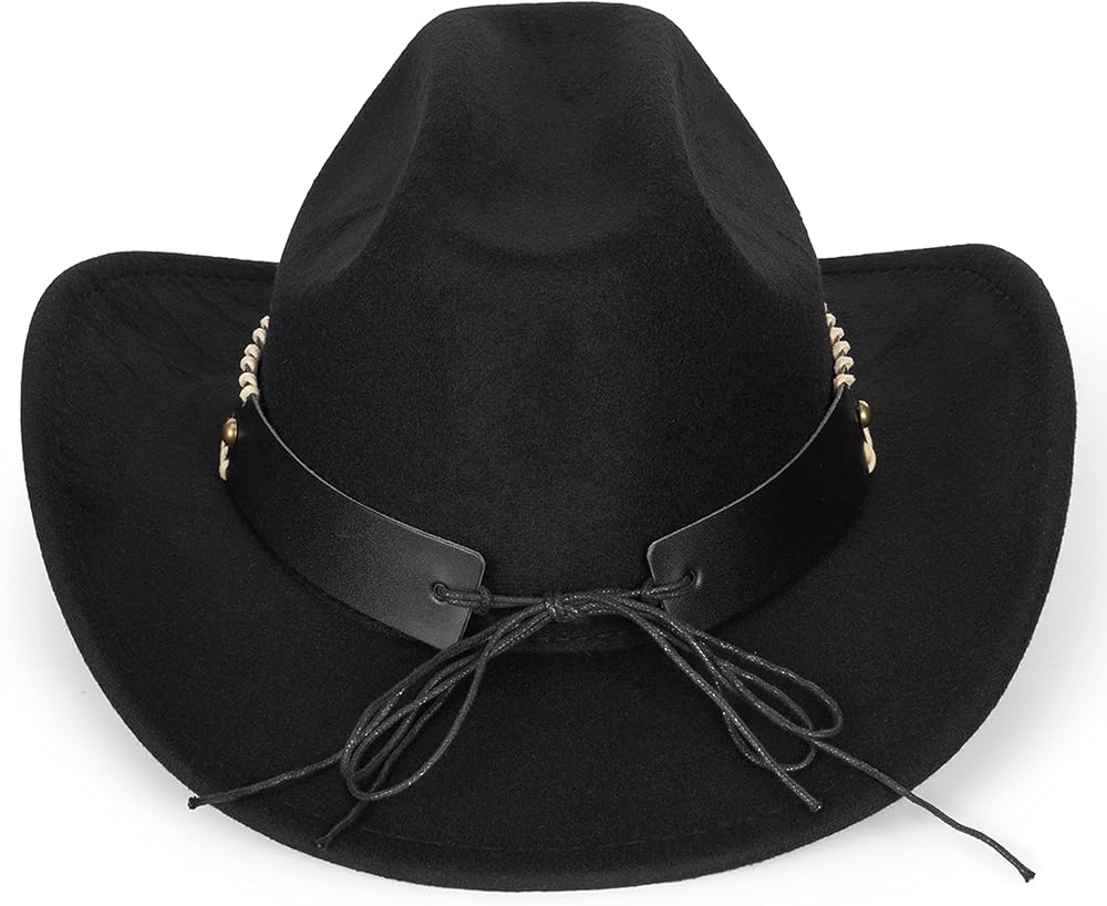 Step into the wild west with this vintage-inspired cowboy hat that exudes rugged charm and timeless style. Crafted with meticulous attention to detail, this wide-brimmed hat is a perfect blend of form and function. The braided band adds a touch of rustic elegance, a versatile choice for both men and women. Whether you're hitting the dusty trails or strolling down city streets, this cowgirl hat will keep you cool and protected from the sun's rays with its ample 2.75-inch (7 cm) brim. Embrace the spirit of the old west and let this iconic accessory elevate your look with a touch of cowboy flair. One size fits most, with an adjustable inner band for a customized and comfortable fit.