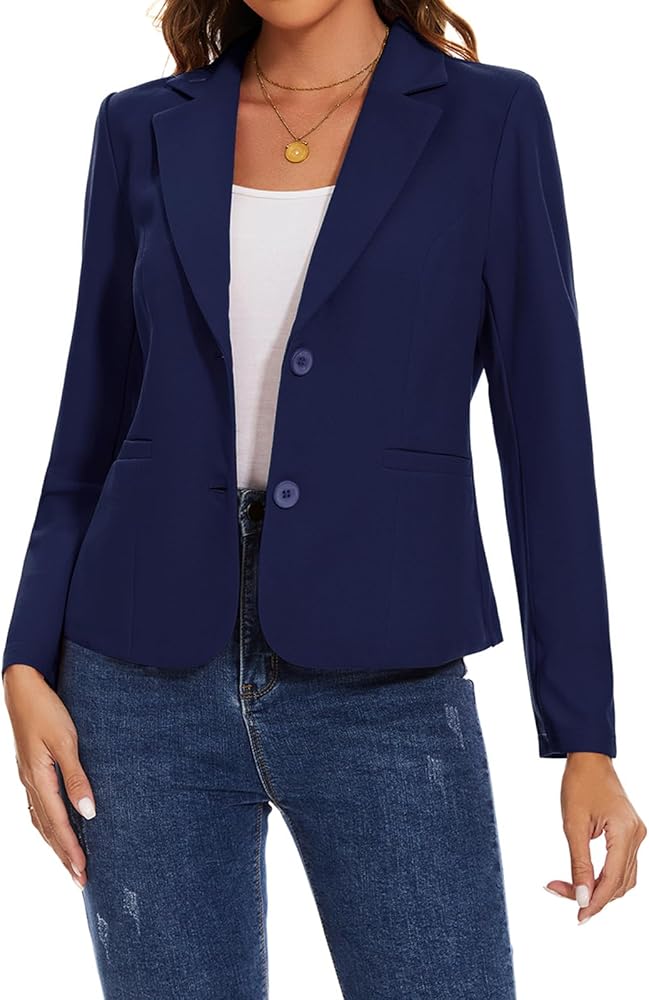 LADI TREND Women's Casual Long Sleeve Short Blazers Lapel Button Work Office Blazer Suit Jacket with Pockets