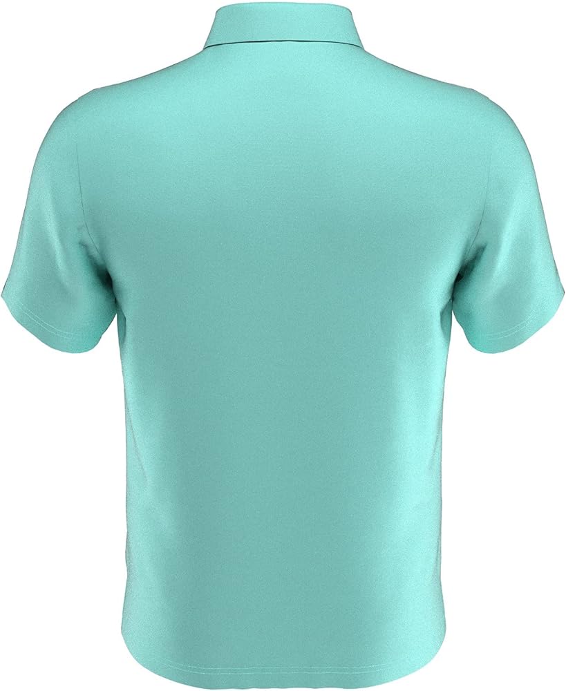 Get into the summer spirit with this PGA TOUR boy's golf shirt. A shadow palm tree print across the chest gives it tropical flair. Stretchy interlock knit fabrication moves with you for a smooth, seamless swing. Without a shadow of a doubt, this golf polo is a winner when it comes to stylish comfort.