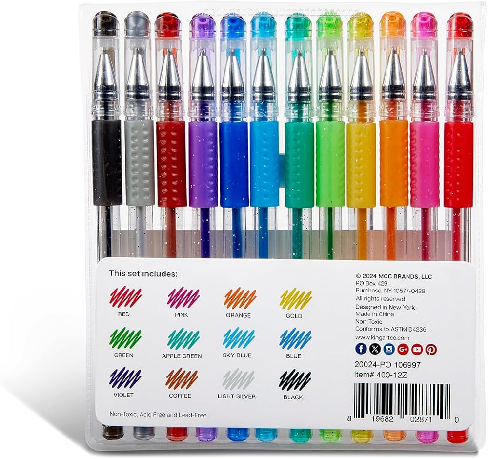 With quality pens in hand, the possibilities are endless. Dive into creating and coloring an intricate mandala, create stunning invitations and greeting cards, write a warm heartfelt letter to friends and family, add outstanding color to your scrapbooks, write a quick not on a post-it. Whatever you decide to use our glitter gel pens for, we know you will love the look, feel, and glamour of that sparkly sheen.