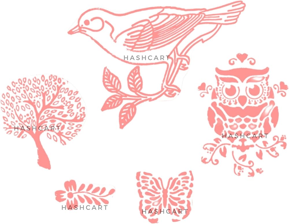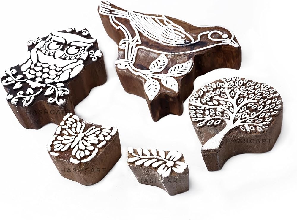 Wooden Printing Stamps Set of 5, Handcarved Birds Floral Wooden Stamps for Card Making Scrapbooking and Crafts on Fabric Clay Henna HASHCART®