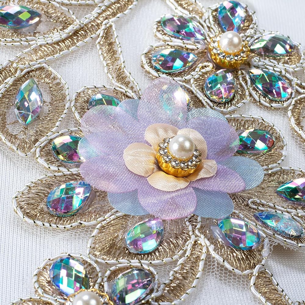 Versatile Usage: Perfect for enhancing the appearance of wedding dresses, evening gowns, veils, costumes, handbags, pillows, curtains, and more, this versatile lace applique offers endless design possibilities.