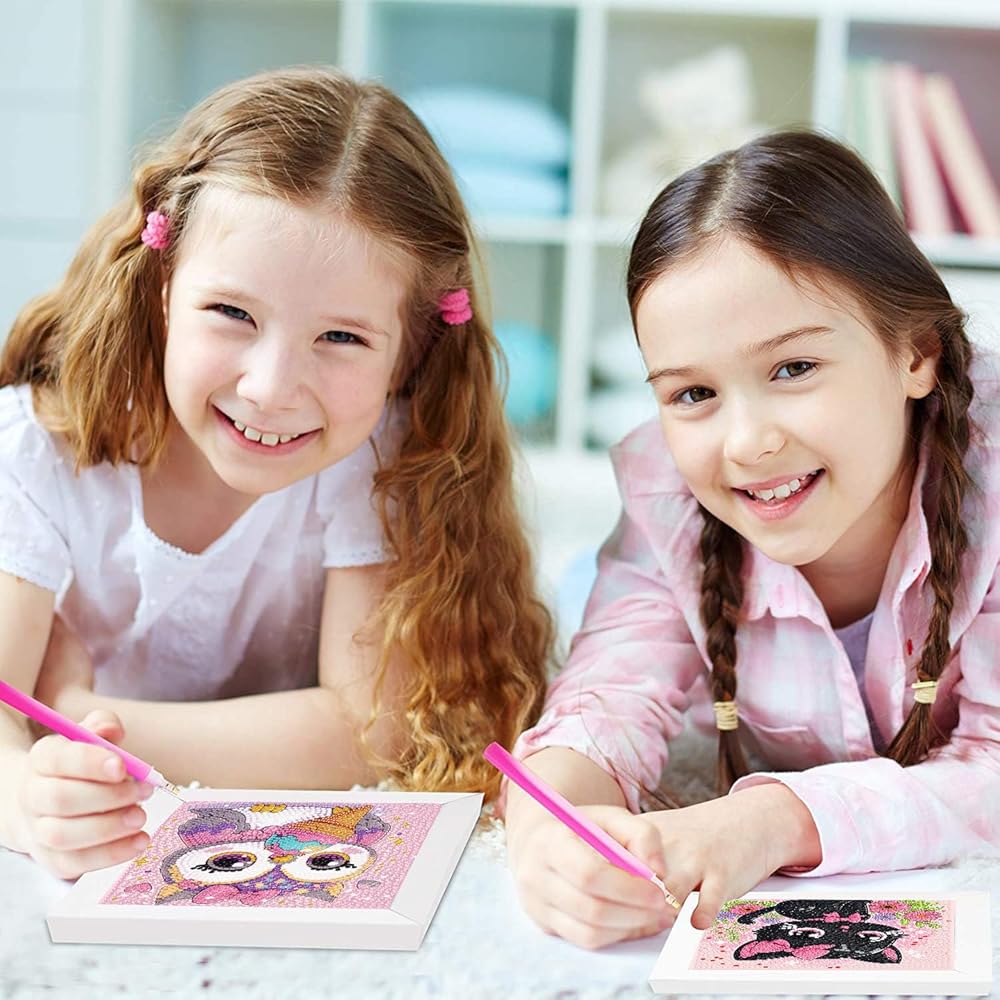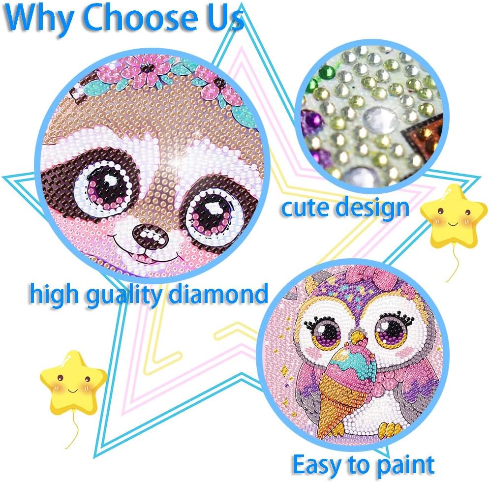Diamond Art Kits for adults:This is a cartoon diamond art kits painting for beginners,what is includes various colors of diamond dots ,a tray,a diamond pen,a canvas and a diamond art glue.All of those tools are the necessary parts in your diamond arts and crafts work.(frame not including), you will create 4 different pattern paintings