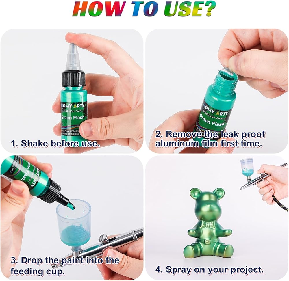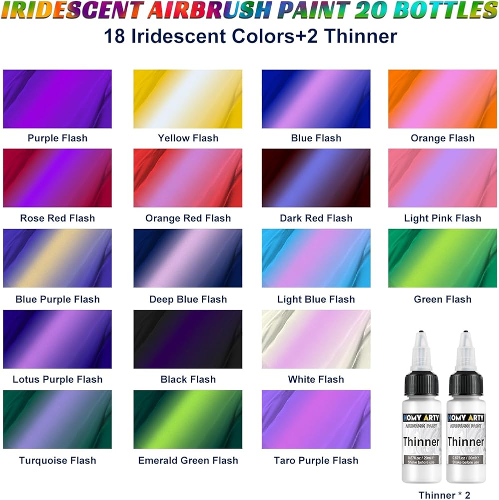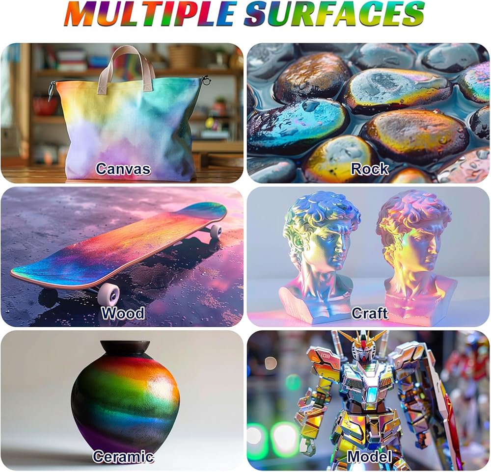 Versatile Application: Suitable for various surfaces including metal, plastic, and wood. Expand your creative horizons with our adaptable Iridescent Airbrush Paint. Unleash your inner artist with HOMY ARTY today