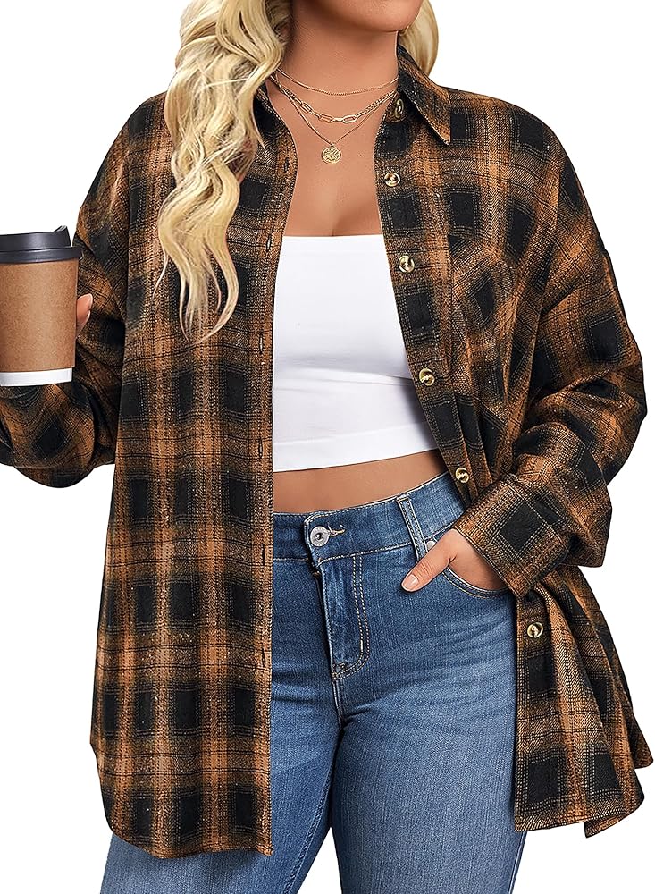 Flannel Shirts for Women: So versatile is our flannel button down shirts that can be wear open as a jacket or closed as a top! It can be tied at the waist or wrapped around waist, wear as 3/4 sleeves or full sleeve