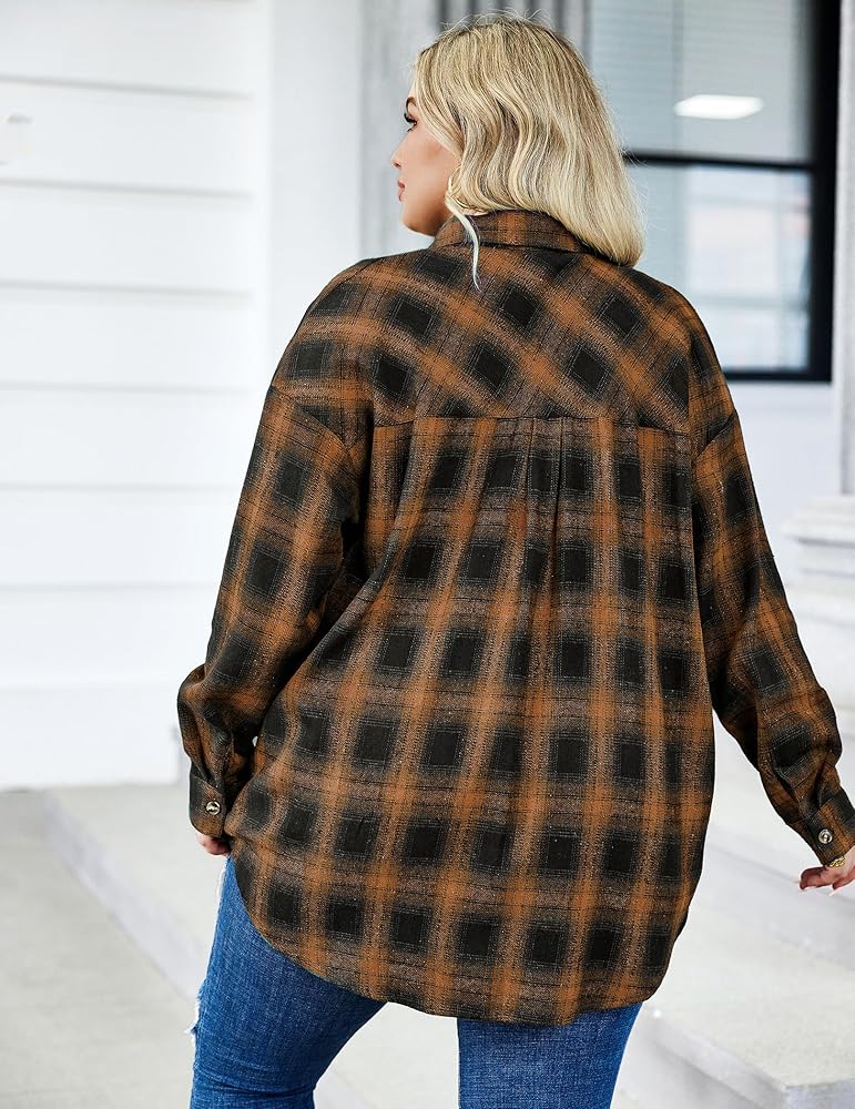 Classic fall flannel plaid shirts: retro and chic, long sleeve flannel shirt, casual lightweight plaid jacket plus size for home, work, streetwear, holiday, office, travel, Christmas, daily, outdoor, party, dating, etc